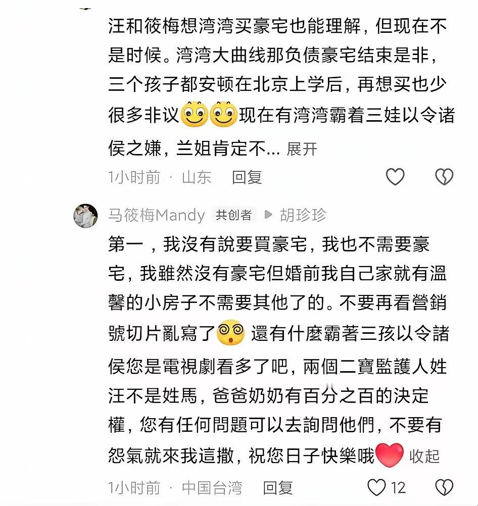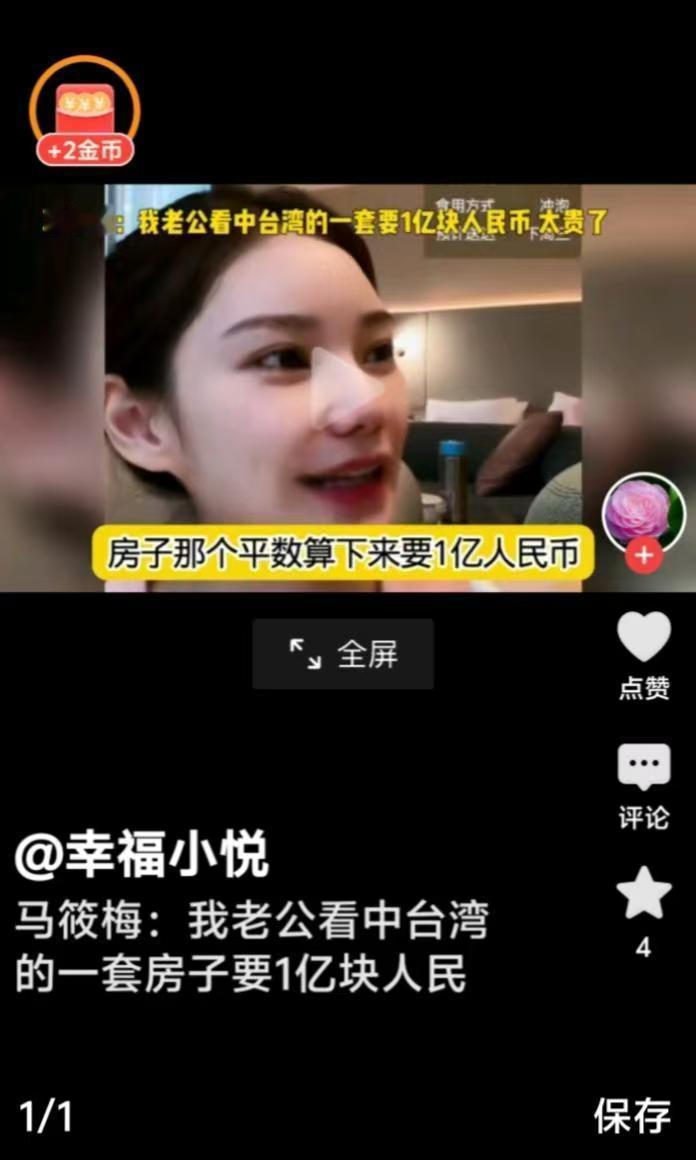 马小霉的话不听也罢,出尔反尔,有健忘症。没结婚前整天赖在大陆汪大傻身边,婚后侍生儿子索要天文数字的豪宅不成就说离不开台湾,这哪里是爱情,这简直是打卡婚姻靠骗婚致富。