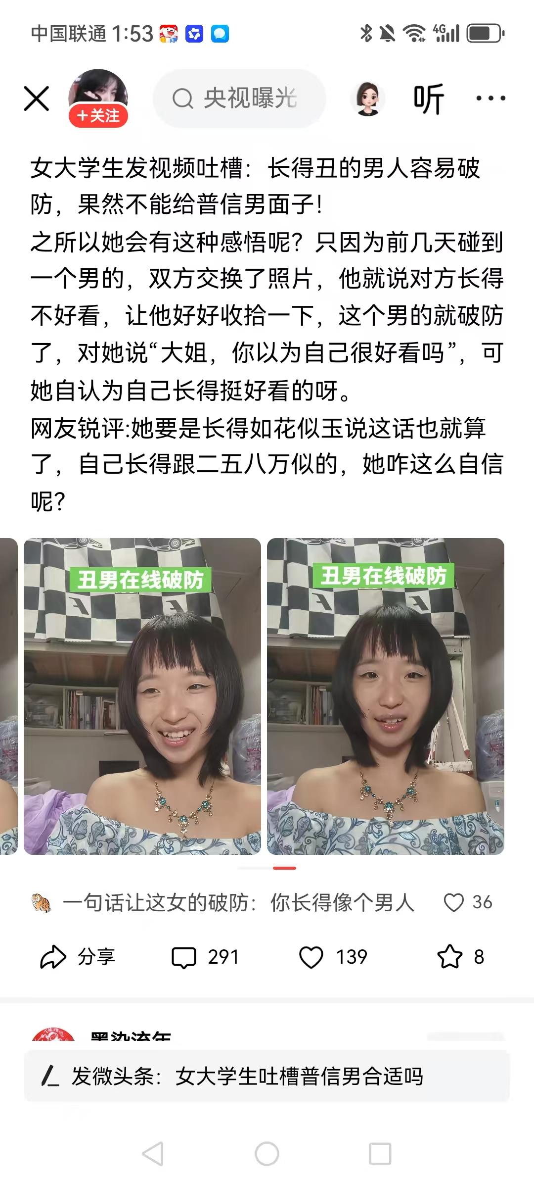 这姑娘是个男的假扮的吧,还是那种丑男。我觉得给不给普信男女面子倒另说,但碰到丑人出来作妖一定不能给面子。