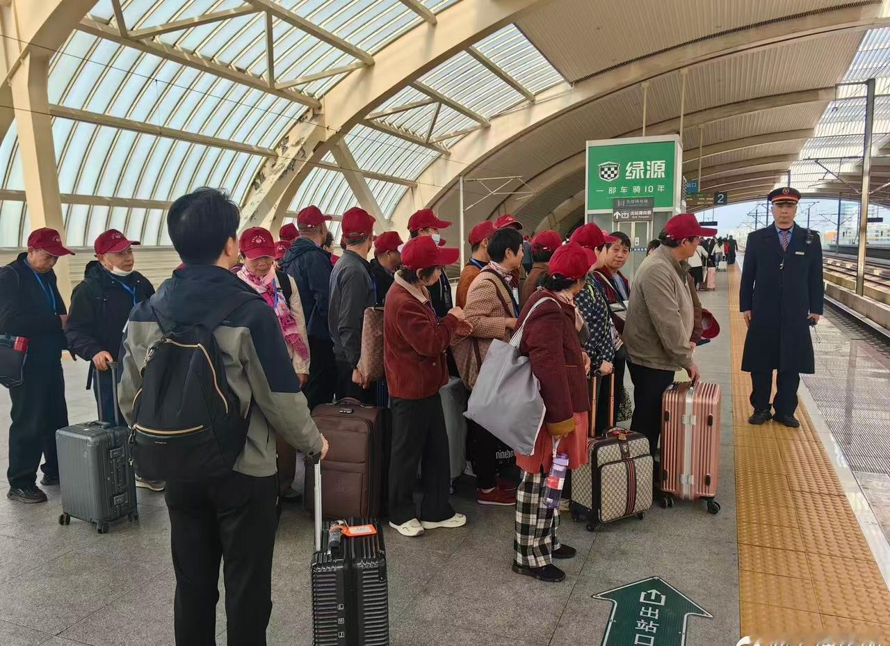 【常州北站暖心护航 全程保障老年旅游团平安出行】4月8日清晨,常州北站迎来四批共