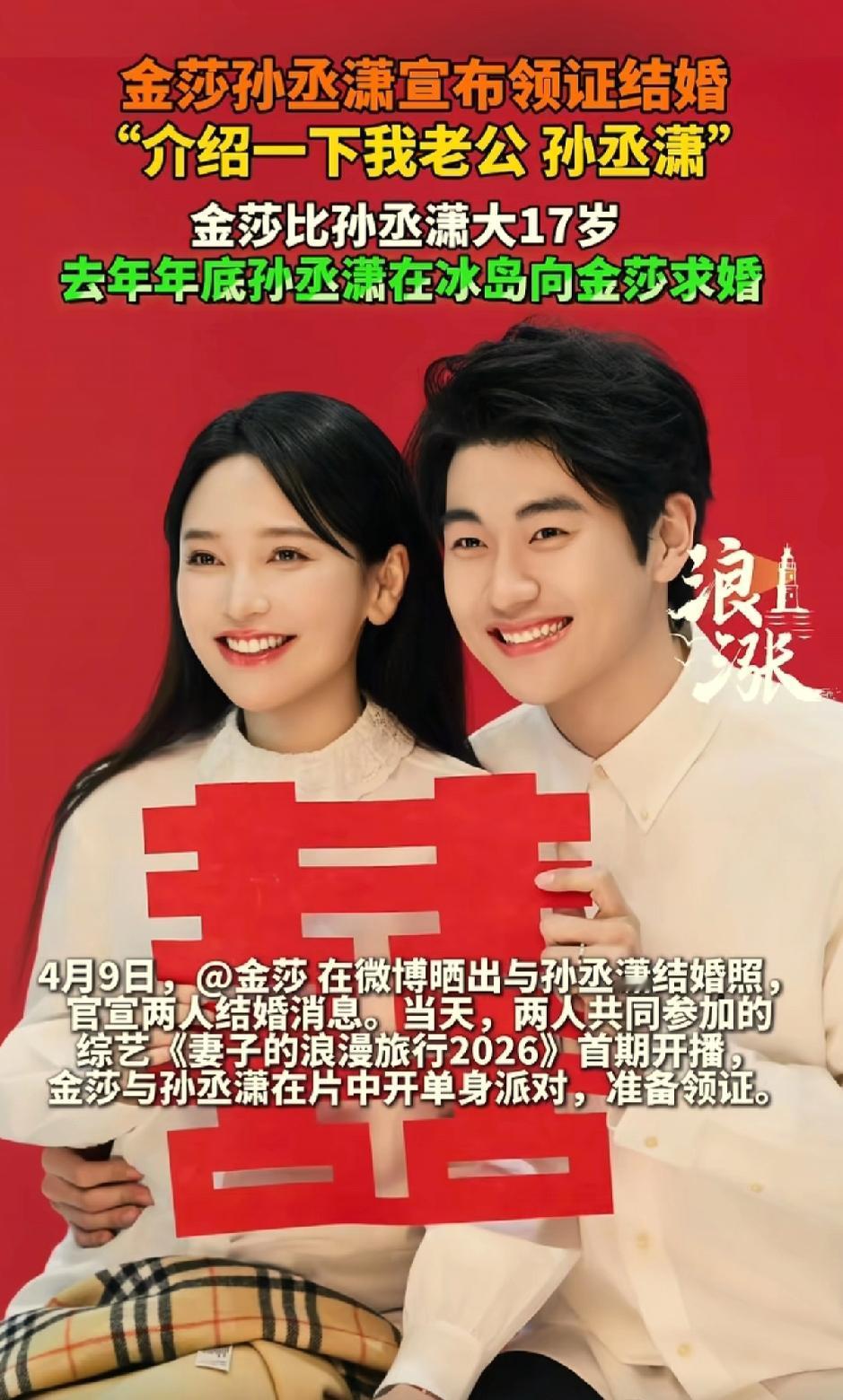 刘晓庆说中国的女人放弃自己太早了,这话只有萧亚轩和和金莎听进去了。金莎和孙丞潇宣布领证,金莎在微博里说:介绍一下我老公孙丞潇。金沙比老公大17岁。老公不一定说找到比你大的就疼你,也不是说找到跟你一样大的就对你好。孙丞潇年龄不大,但非常有担当,在节目组的时候就有表现。脾气又好,又会做家务,对老婆又好。又年轻又青春活力。找到这样的老公,就是找到宝了。