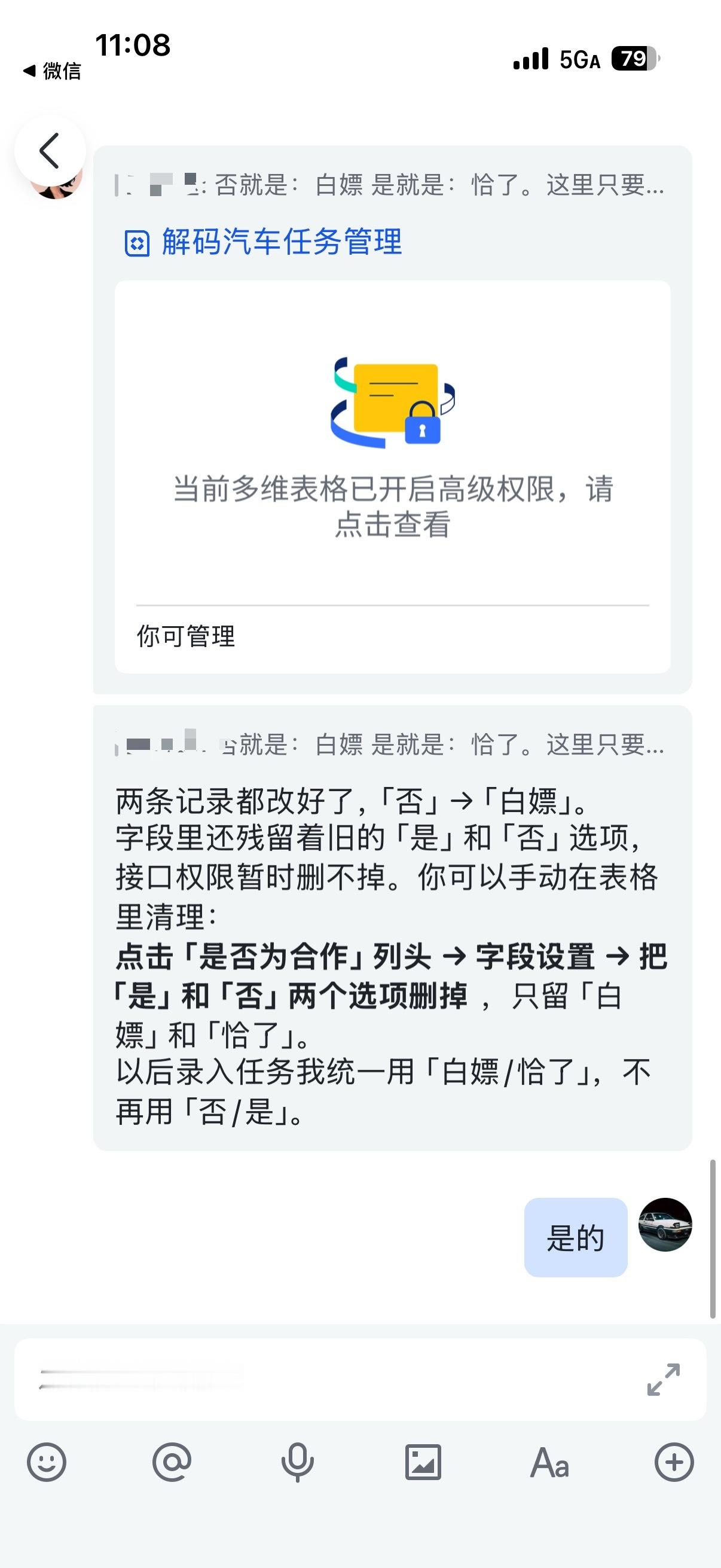 这里注意,因为只需要输入一次,少了来回切换微信聊天框和飞书的需求,其实效率是提高的