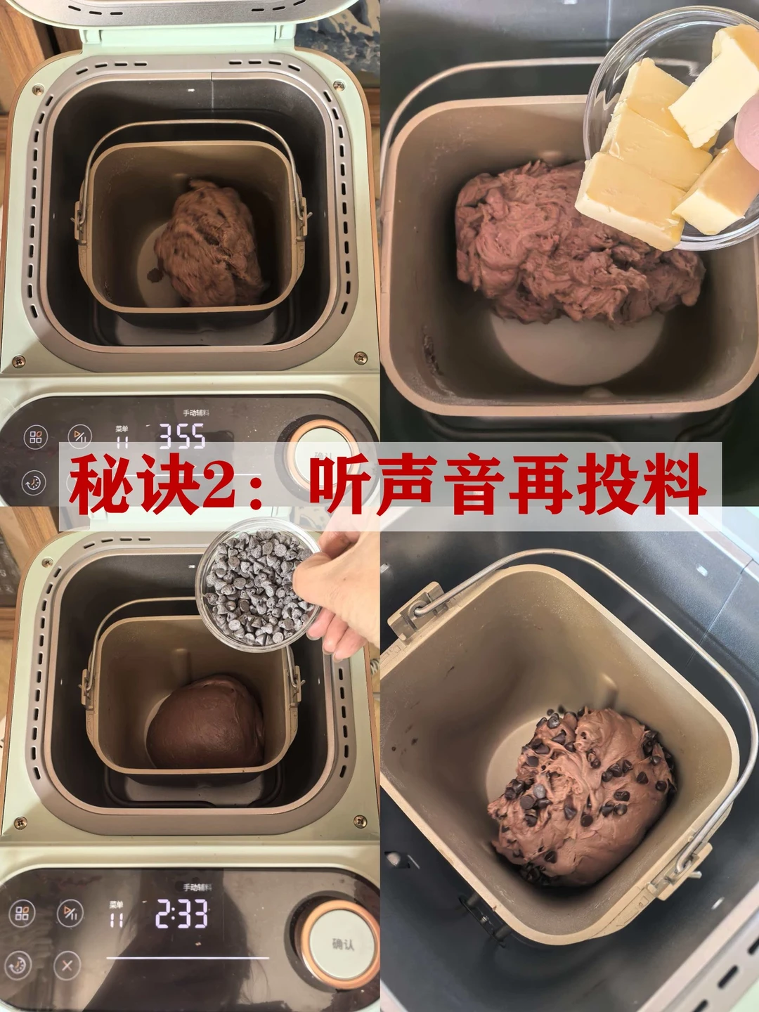 这样,既享受了面包机的“全程免碰手”,又能得到颗颗完整的“巧克力豆”效果。