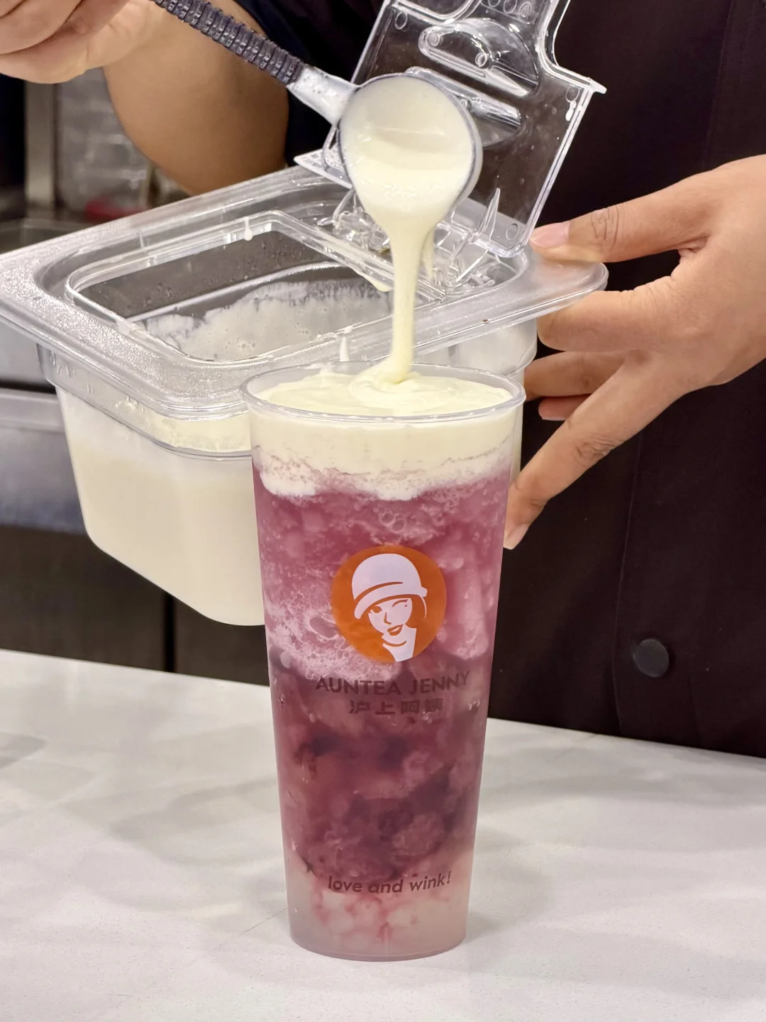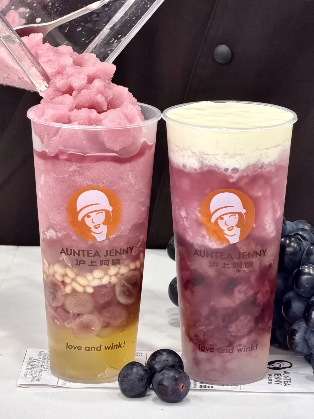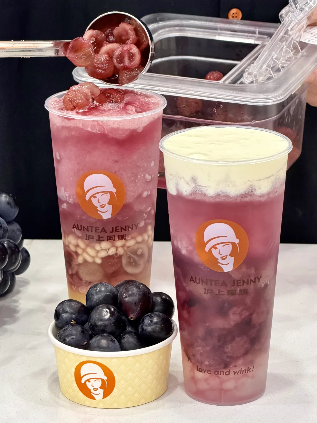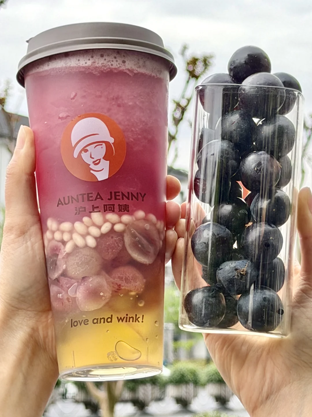 茉莉针王茶底清清爽爽,和NFC葡萄汁融合得恰到好处,顶部绵密的芝士奶盖咸香浓郁,大口吸全是扎实的葡萄果肉,果香混着芝香,每一口都鲜爽满足~