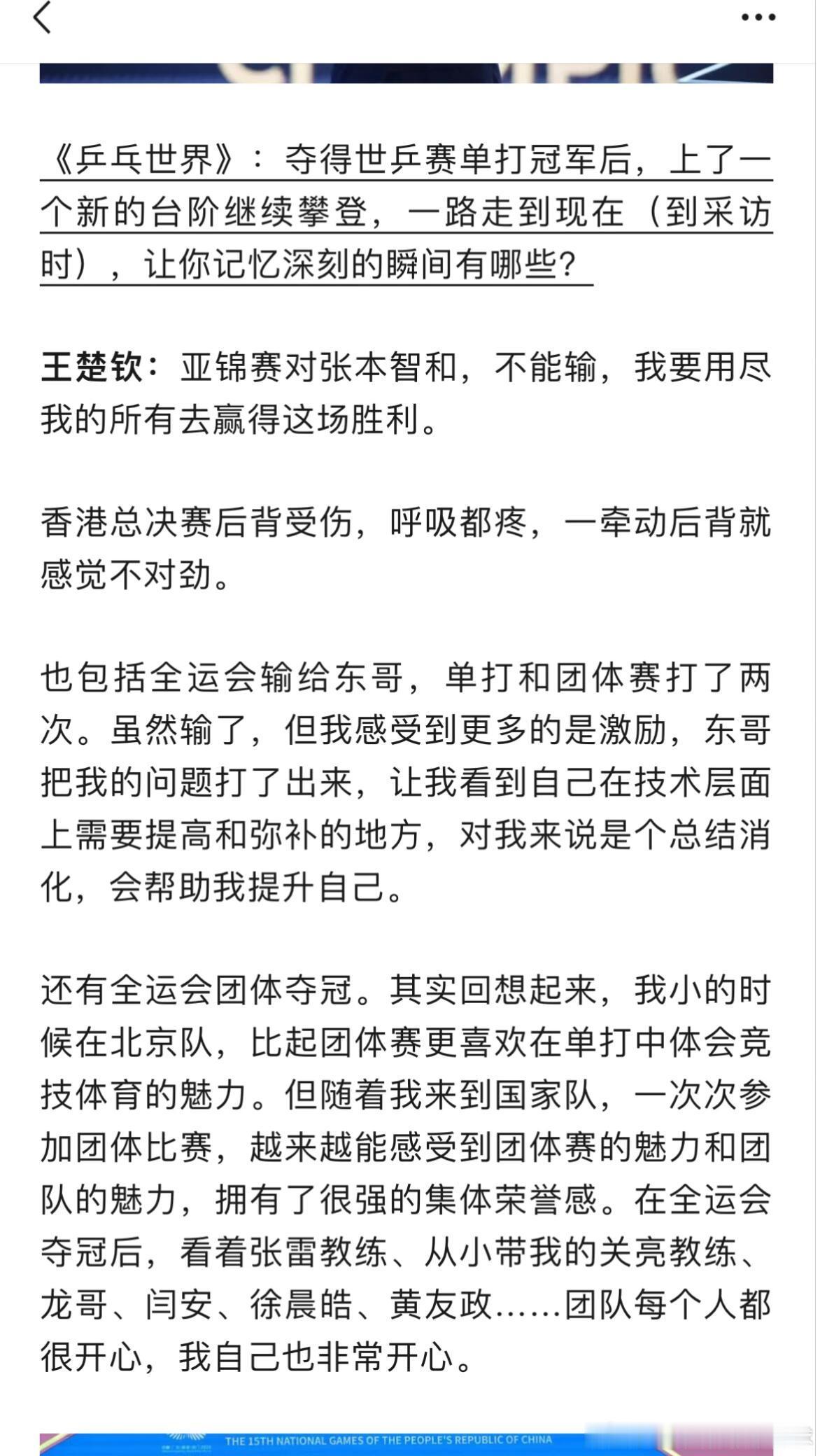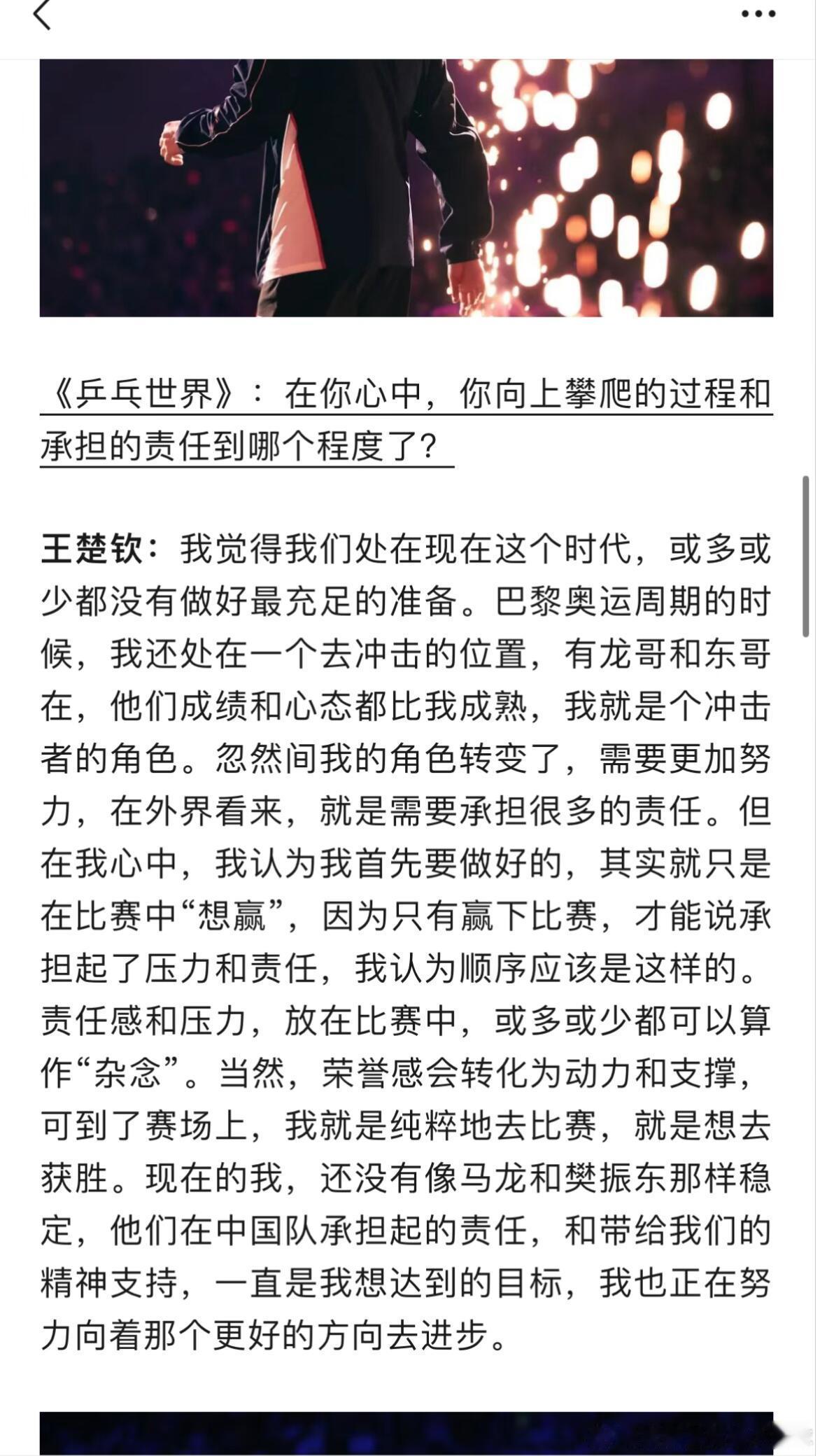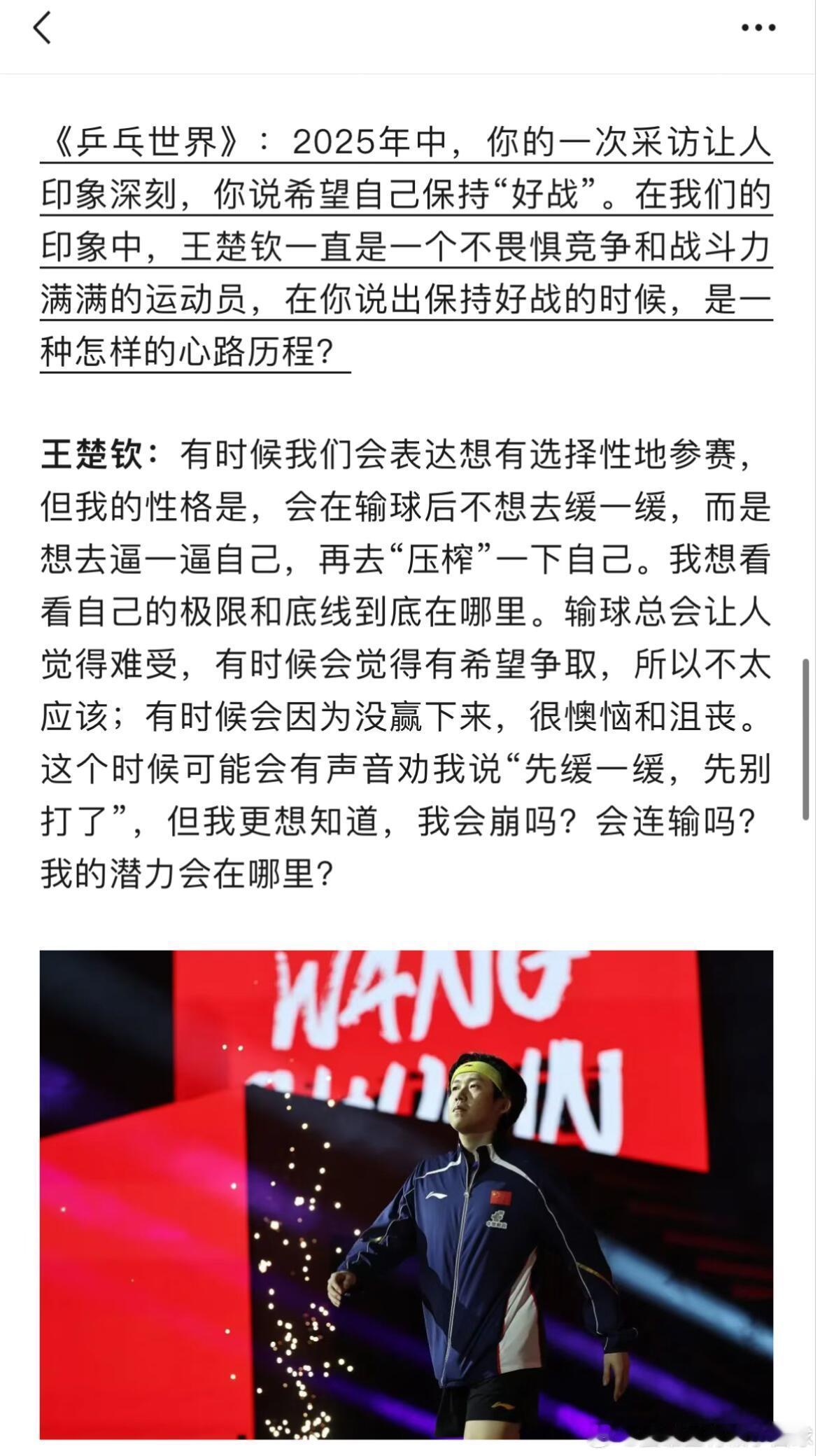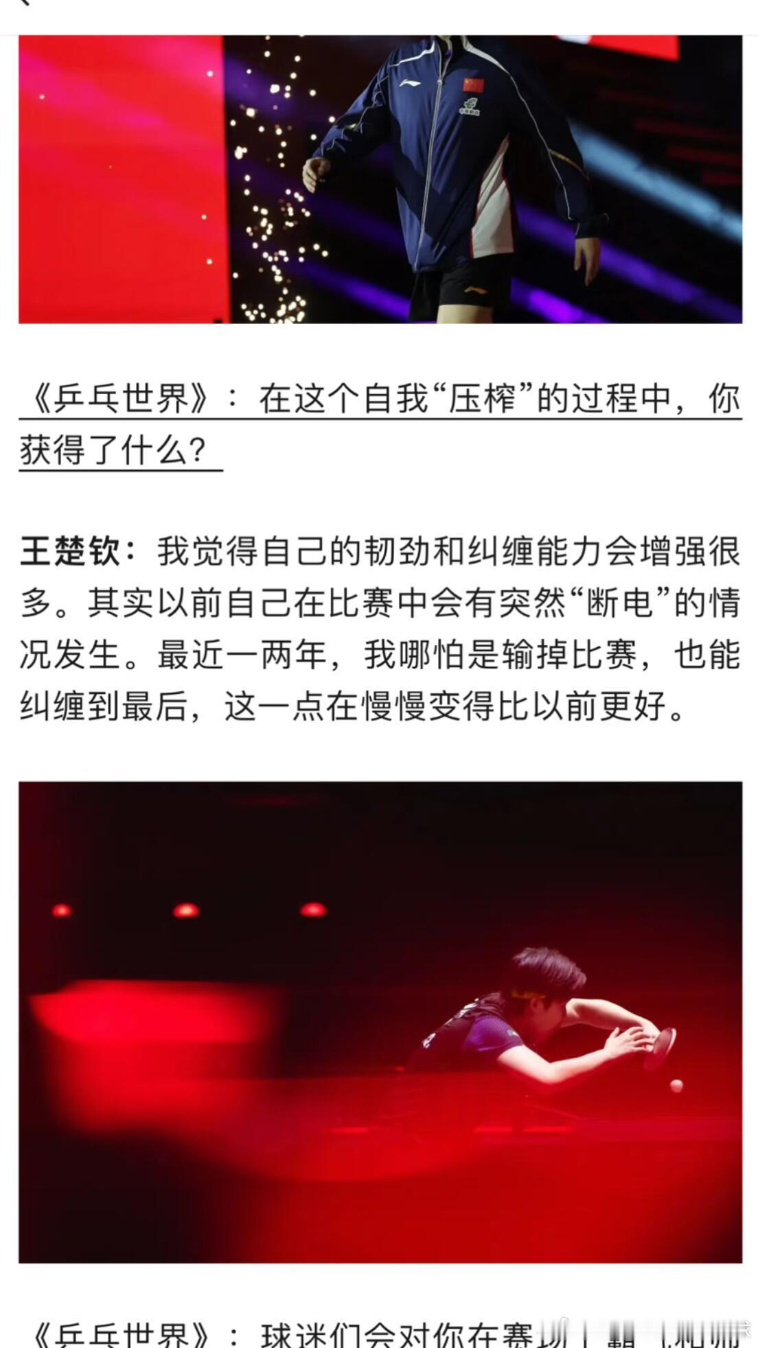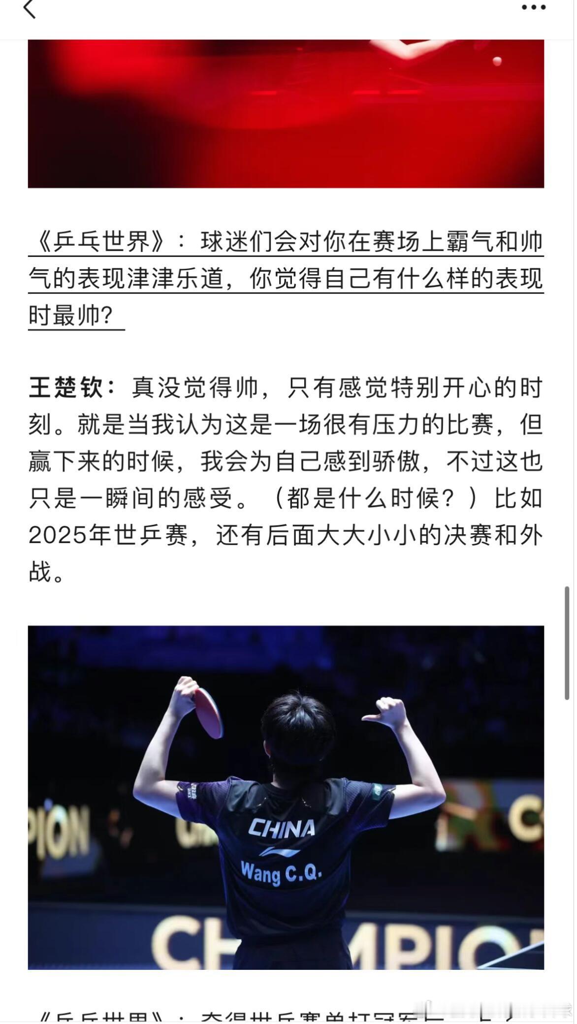 王楚钦 《乒乓世界》王楚钦:只想向上,只想赢!看哥的采访永远言之有物!