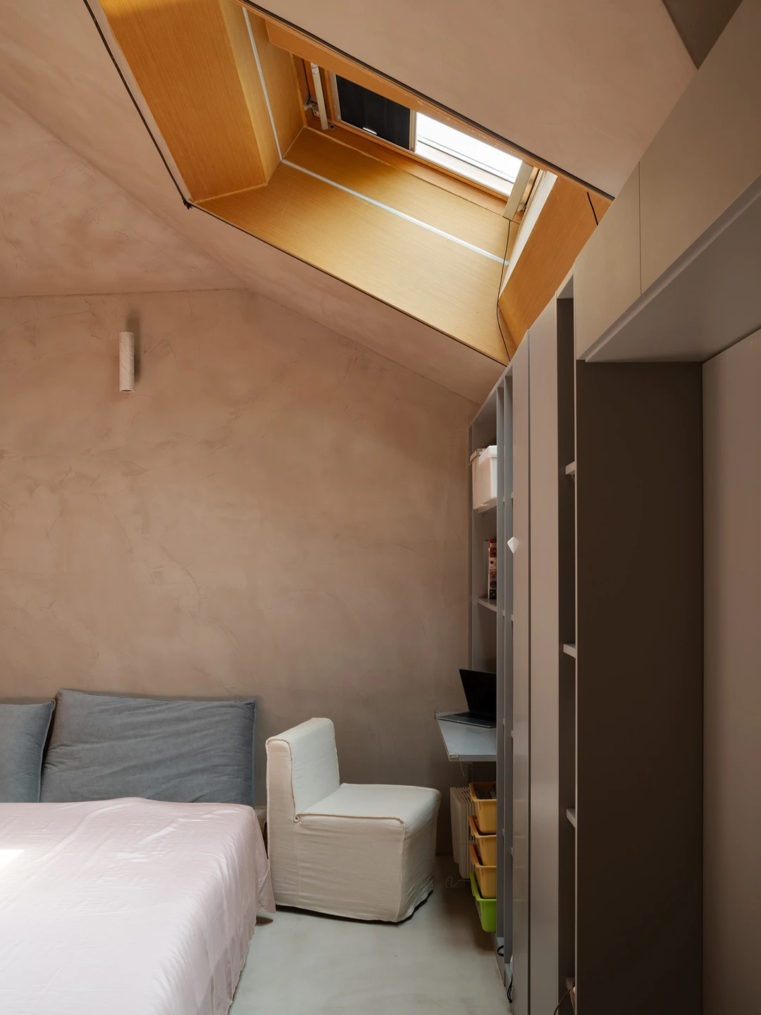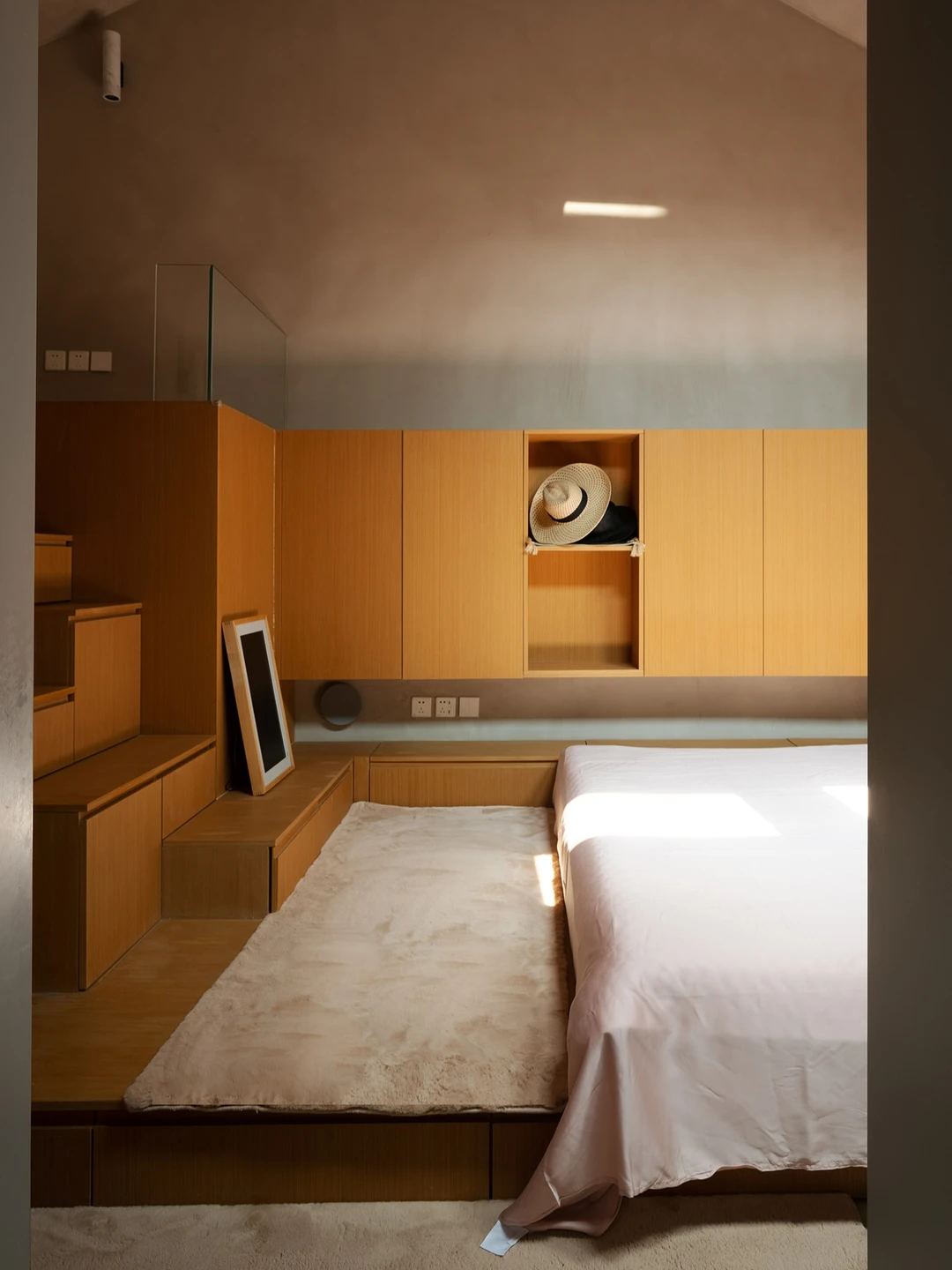 就像这个家,屋主的房子是个顶楼跃层,2楼还是个斜顶,