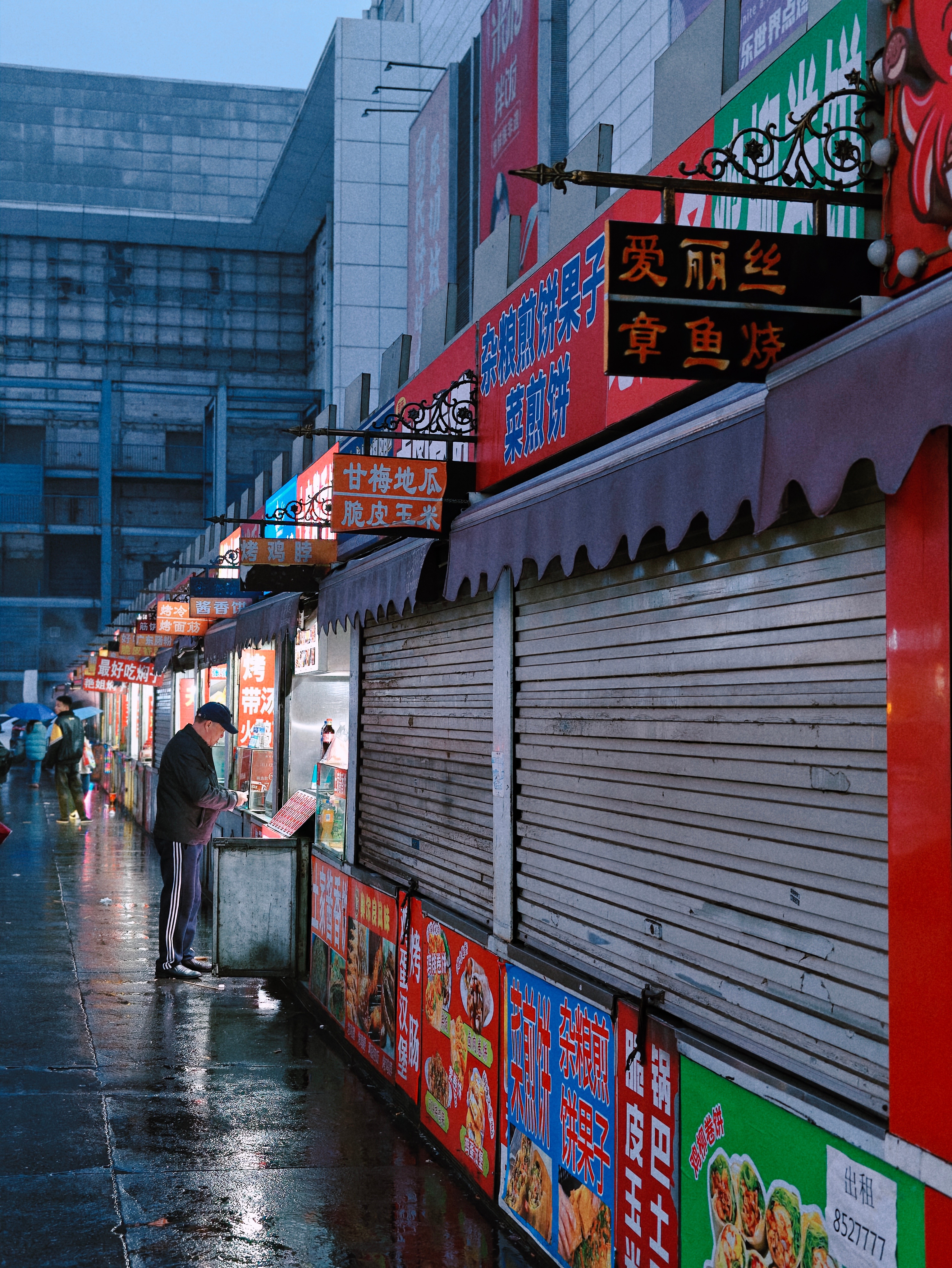 今天想吃个菜煎饼,顶着雨过来买,竟然没开门。