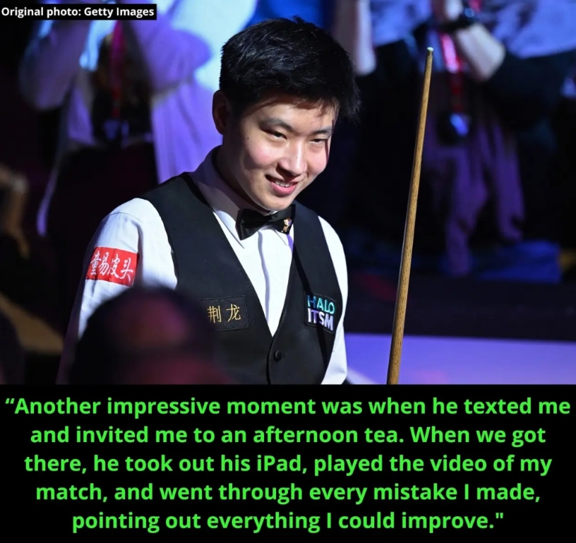 赵心童在接受人民日报采访时谈到奥沙利文对他职业生涯的影响。