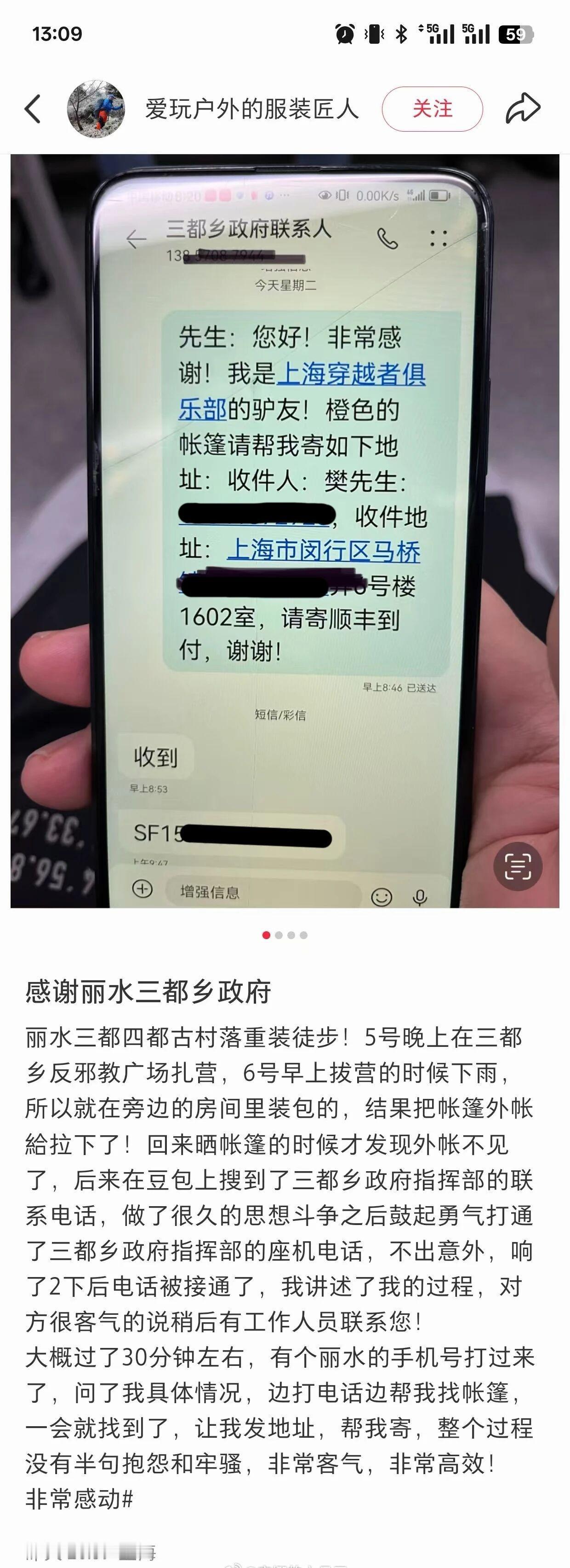 不必刻意寻找风景,松阳的温暖本身就是一道风景✨松阳用温暖守护每一位游客上海游客露营时遗失物品,三都乡政府半小时快速寻回、贴心寄还,收获游客真诚点赞。好山好水之外,更有人情味满满,这就是松阳,一座有温度的小城❤️一座有温度的治愈小城松阳