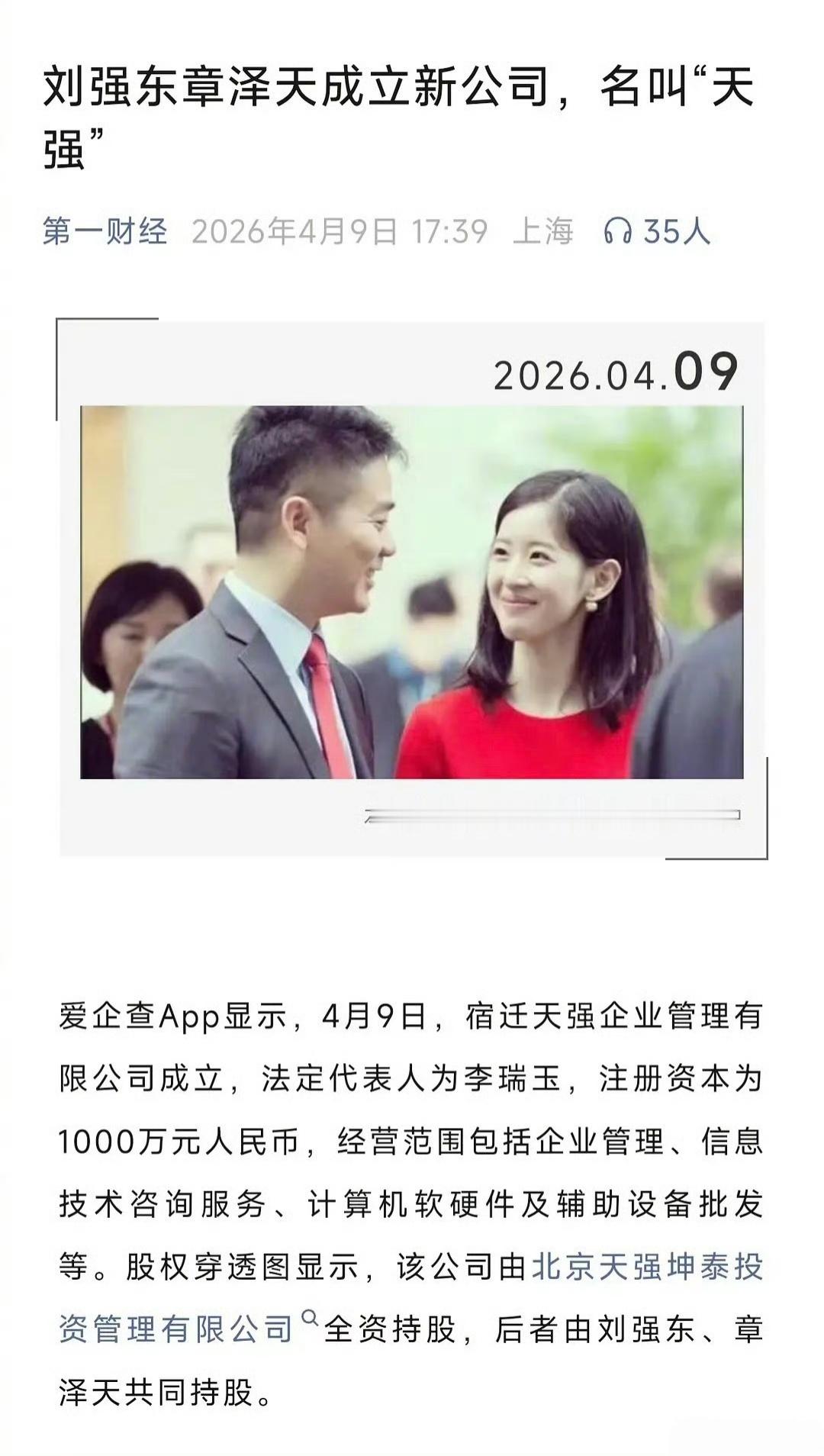 以前是京东,现在是天强,从自己跟对象的名字里拆字起公司名,也是大强子的传统艺能了