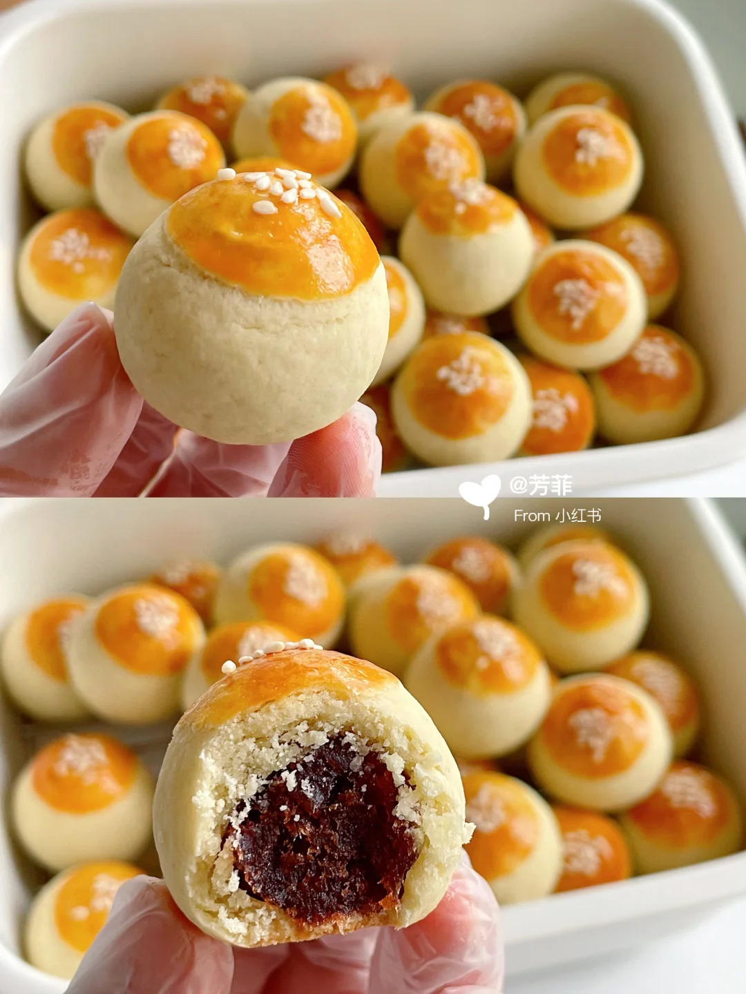 ✔️酥皮:黄油100g | 糖粉35~40g | 常温全蛋液40g | 低筋面粉210g | 刷表面蛋黄一个 | 芝麻少许