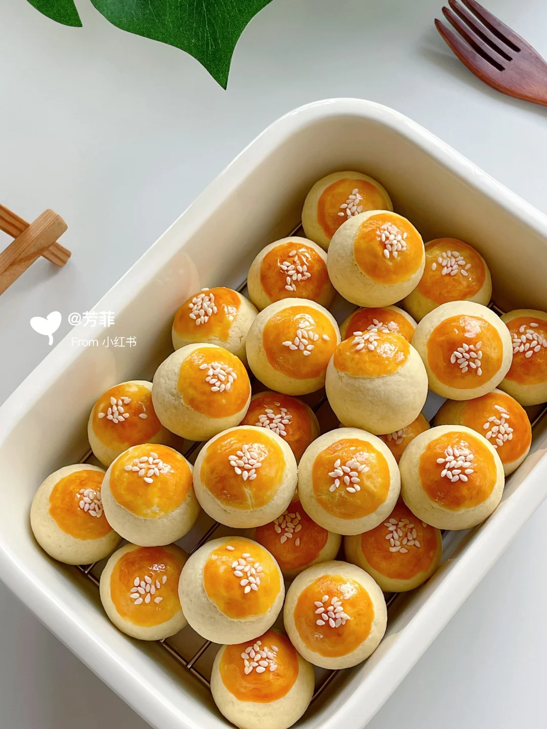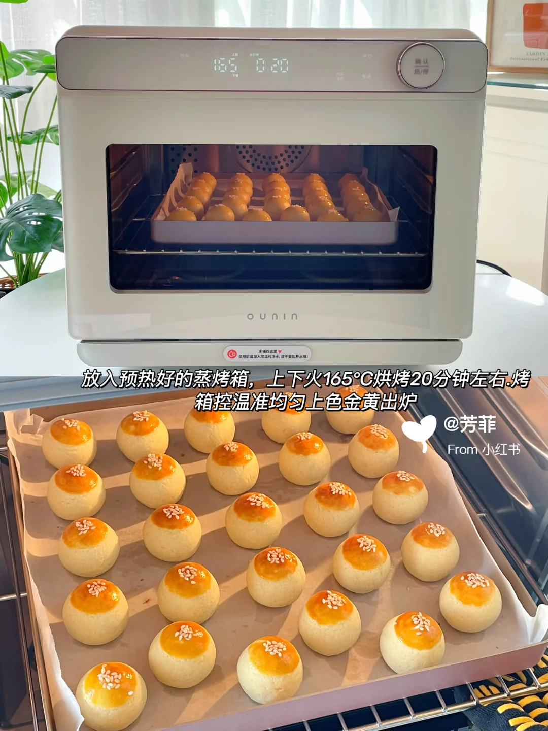 4️⃣这里一共做了26个,放入预热好的烤箱,上下火165℃烘烤20分钟左右.烤箱上色金黄出炉,刚烤好略软晾凉再取动就变酥了⚠️具体烘烤温度和时间需按自家烤箱温差灵活调整