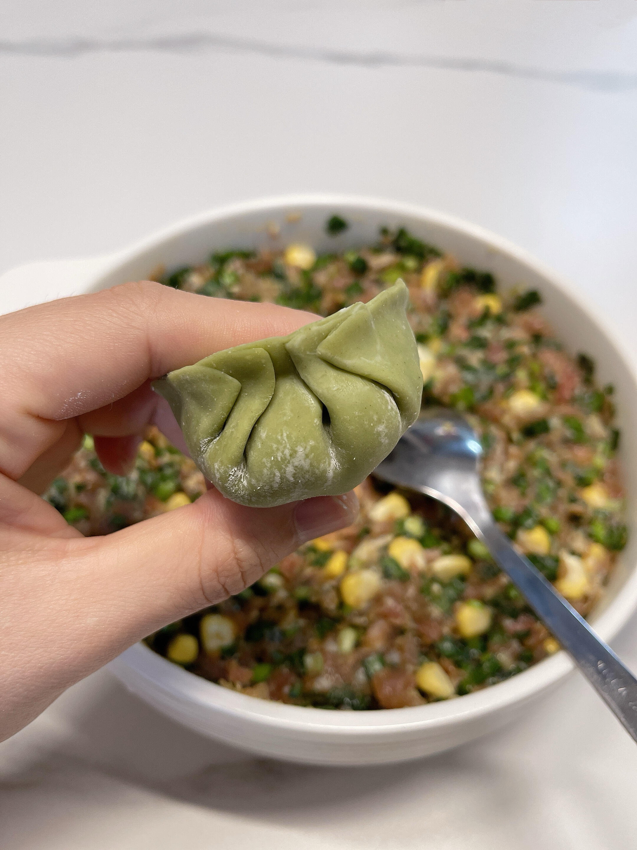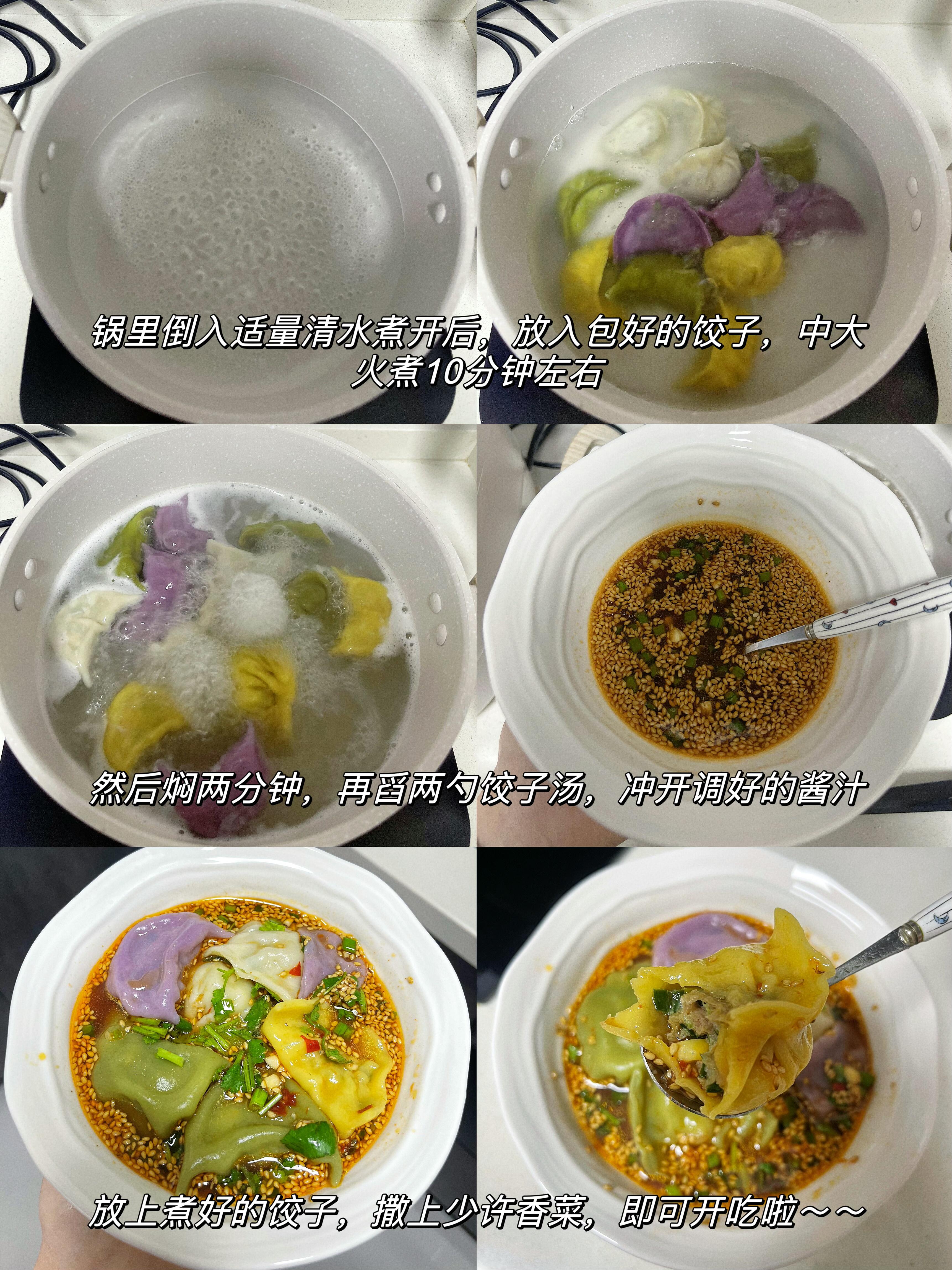 3️⃣ 煮饺子的时候,舀两勺滚烫的饺子汤,倒入调好的料汁中冲开,再放入煮好的水饺,撒上少许香菜,一碗绝味酸汤水饺就搞定