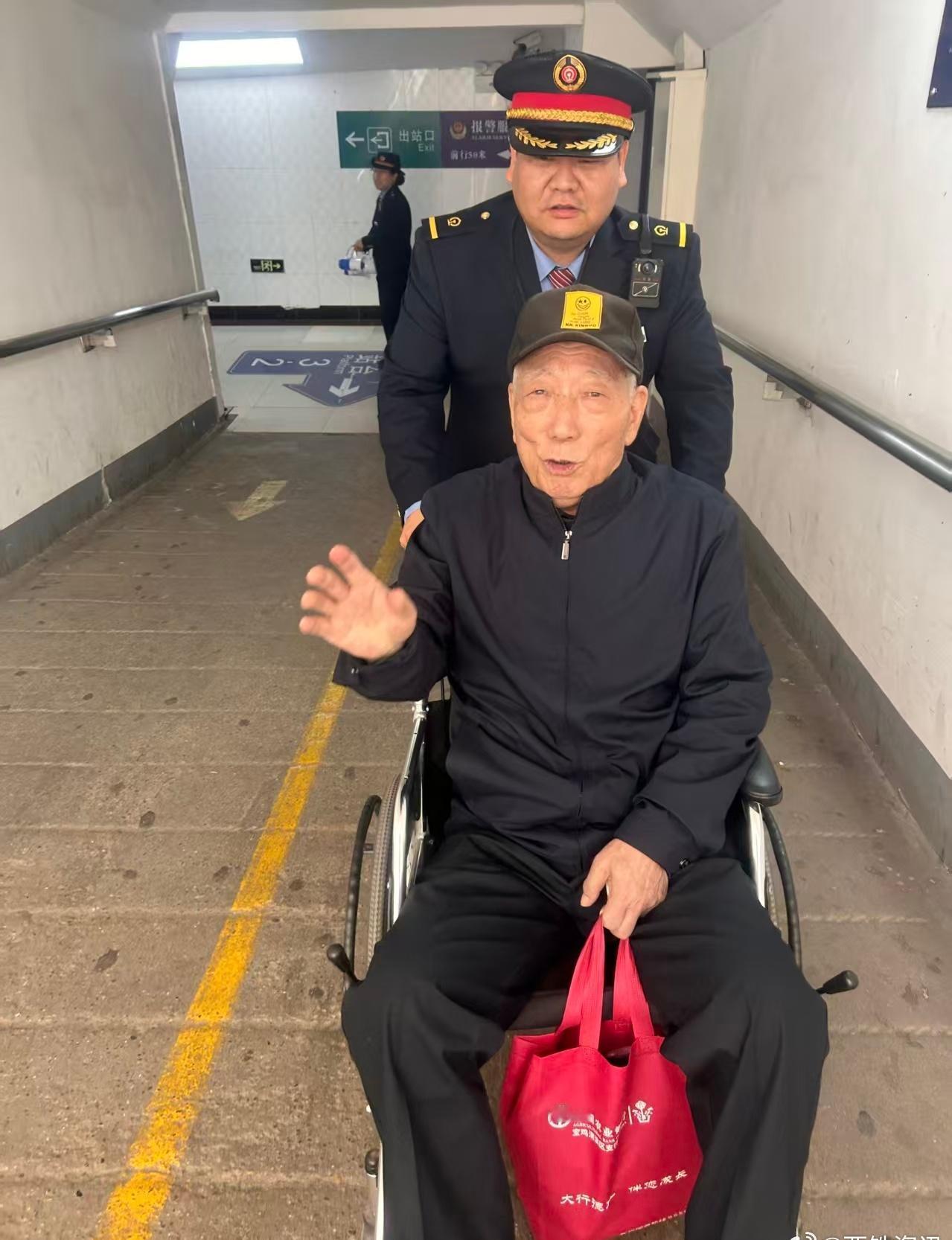 近日,宝鸡车务段杨陵车站客运员王皓艺在站台接送K1132次列车时,从13车下来一位白发老人,行动十分缓慢,走走停停,工作人员主动为行动不便的老年旅客提供轮椅服务,全程细心护送,用专业与温暖打通出行“最后一公里”。@宝鸡车务段 (宝鸡车务段 马坤智) ​​​