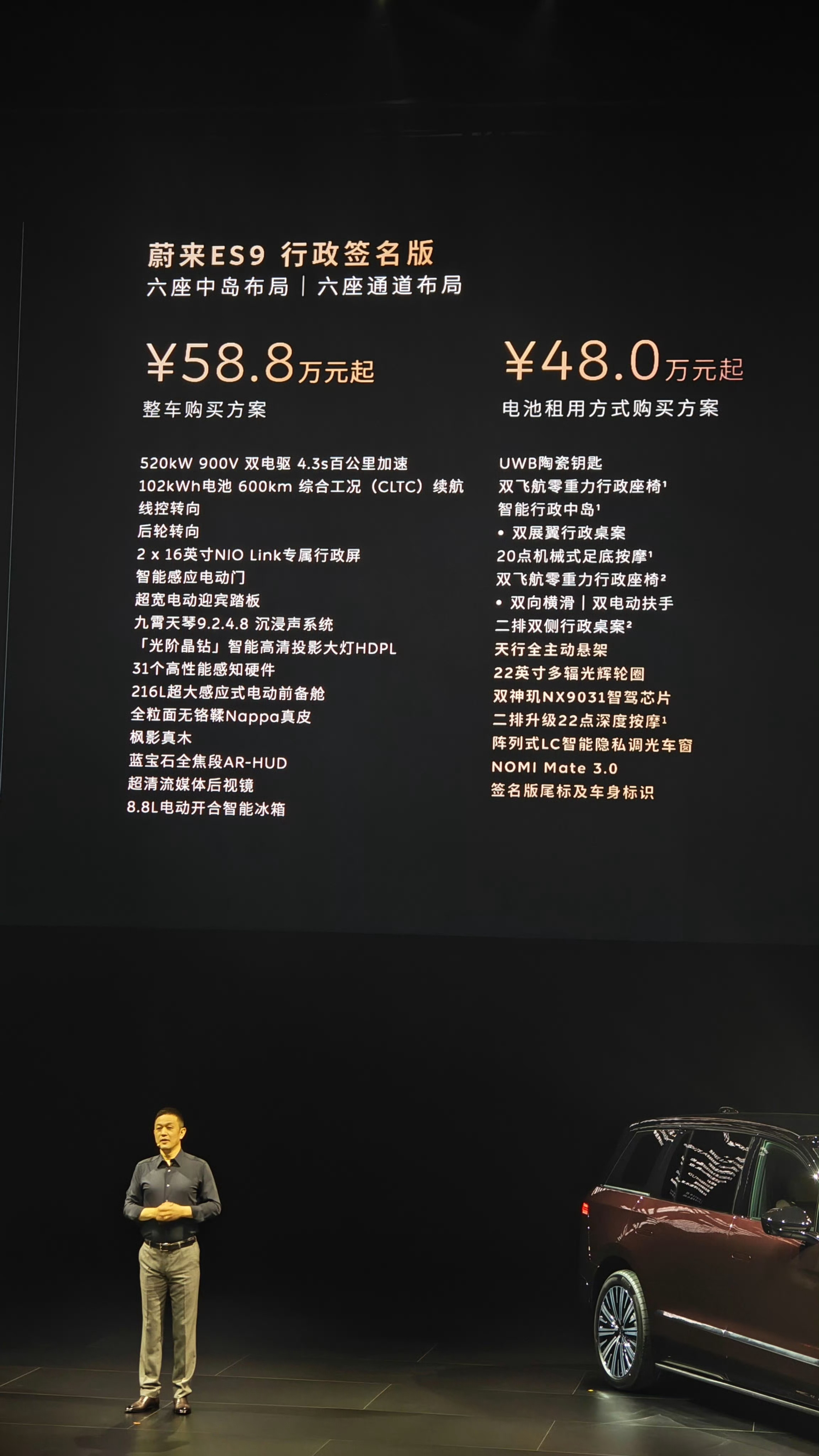 蔚来ES9预售价格来啦!行政豪华52.8万起,Baas价格42万起行政签名58.