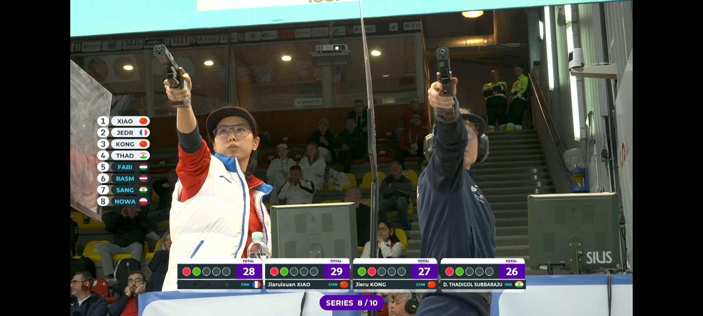 女子25米手枪🥇,肖嘉芮萱女子25米手枪🥈,孔婕如非常精彩的金牌加枪,两位选手的39中的决赛成绩也是窝巢女子25米手枪外战最佳战绩。恭喜肖嘉芮萱收获自己的世界杯首金和罗马世界杯总决赛门票