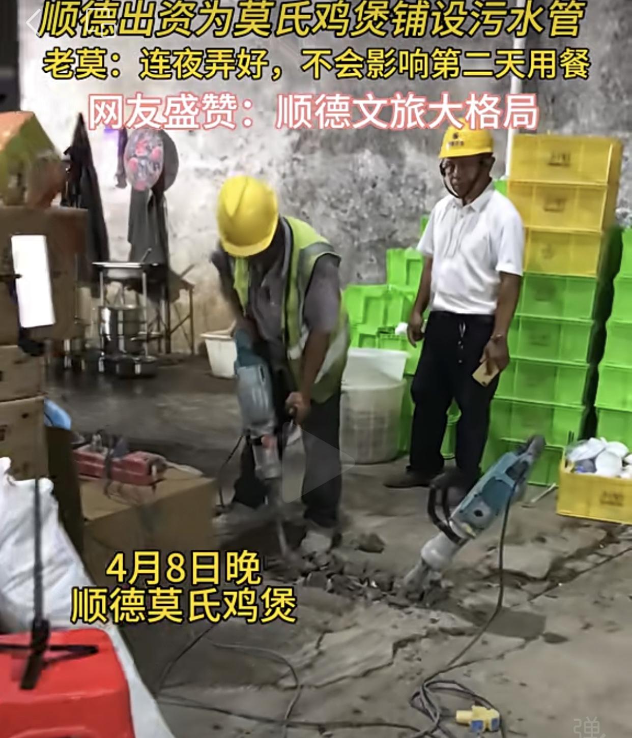 为稳住莫叔,顺德陈村连夜为莫氏鸡煲厨房免费安装排污管道。