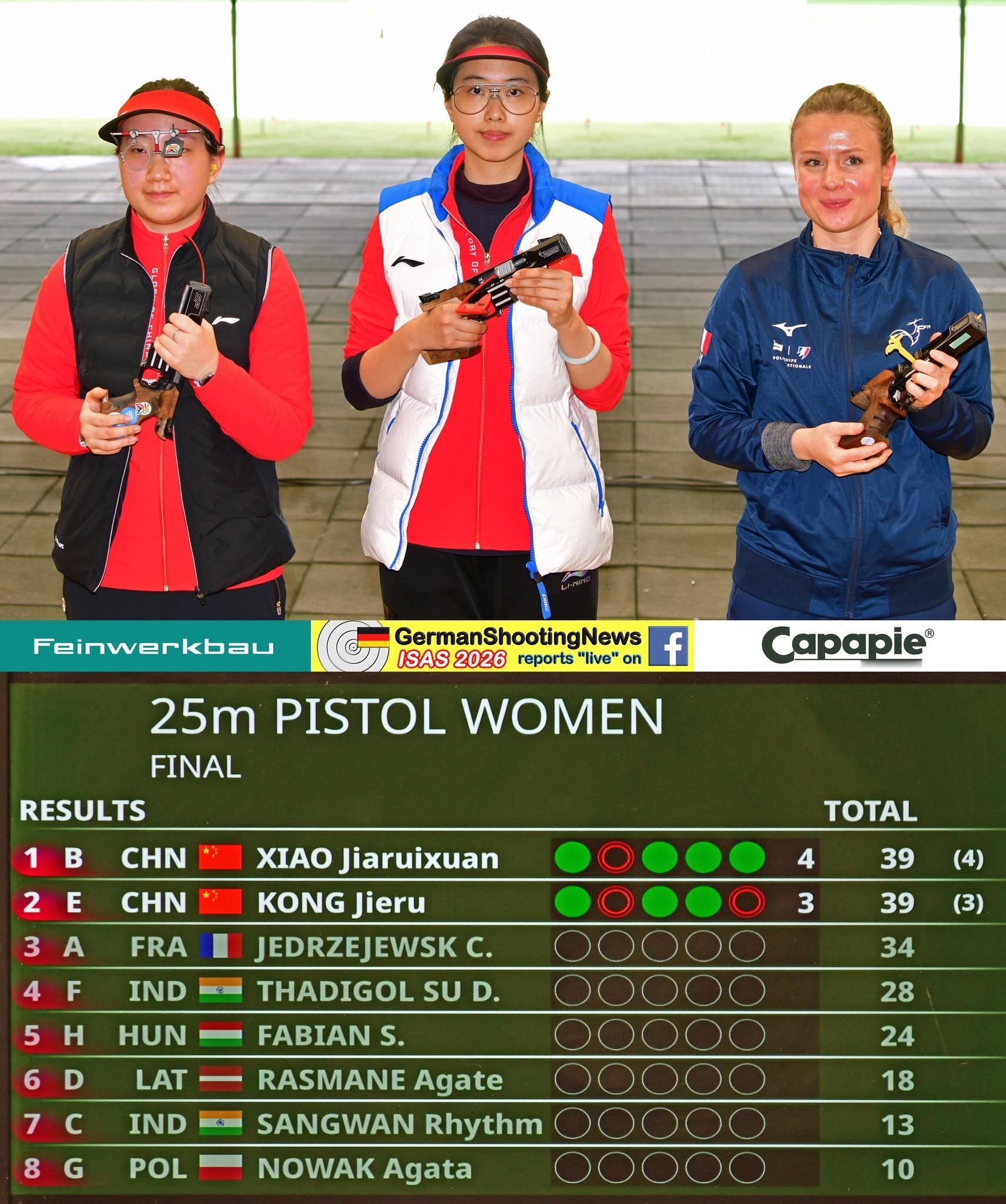 女子25米手枪,肖嘉芮萱🥇、孔婕如🥈决赛图cr德国射击新闻、国际射联