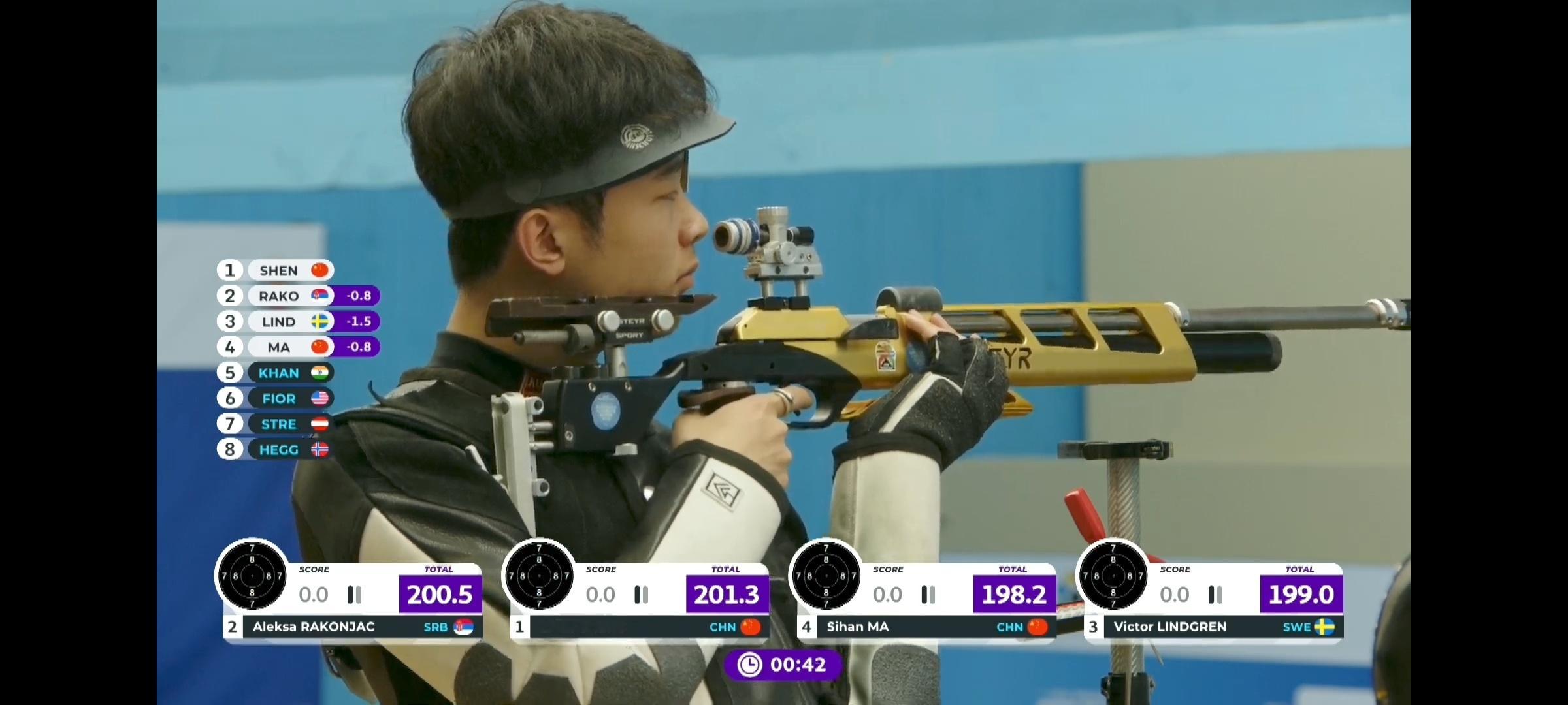男子10米气步枪第四名,马思涵