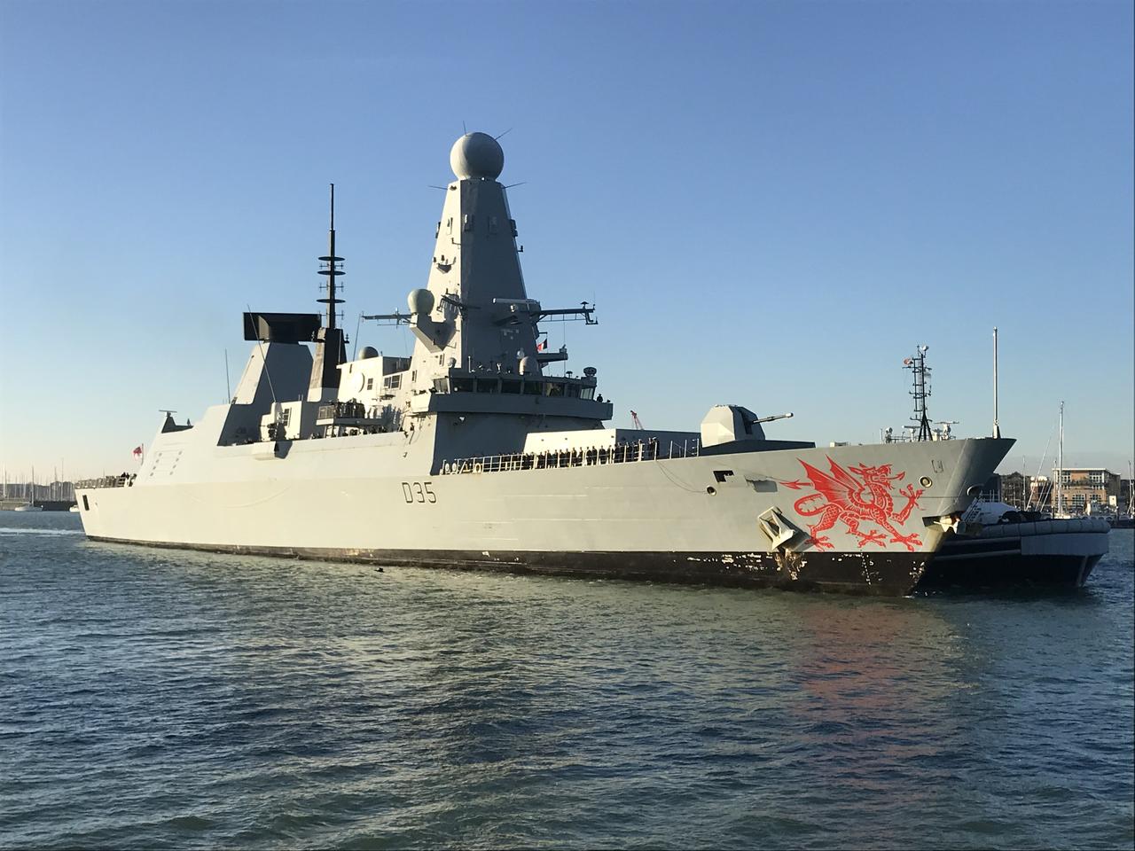 4月8日,英国媒体报道称,英国国防部表示,英国海军驱逐舰“龙”号因“轻微技术问题”将停靠在码头(据称希腊的军用港口)。“英国海军龙号驱逐舰的供水系统存在问题需要维修,但在此期间这艘驱逐舰仍将保持高度战备状态。”英国国防部声称:“舰上并无危机,龙号驱逐舰在撤离战区期间,英国海军舰上官兵始终能获得充足的食物和饮水。”