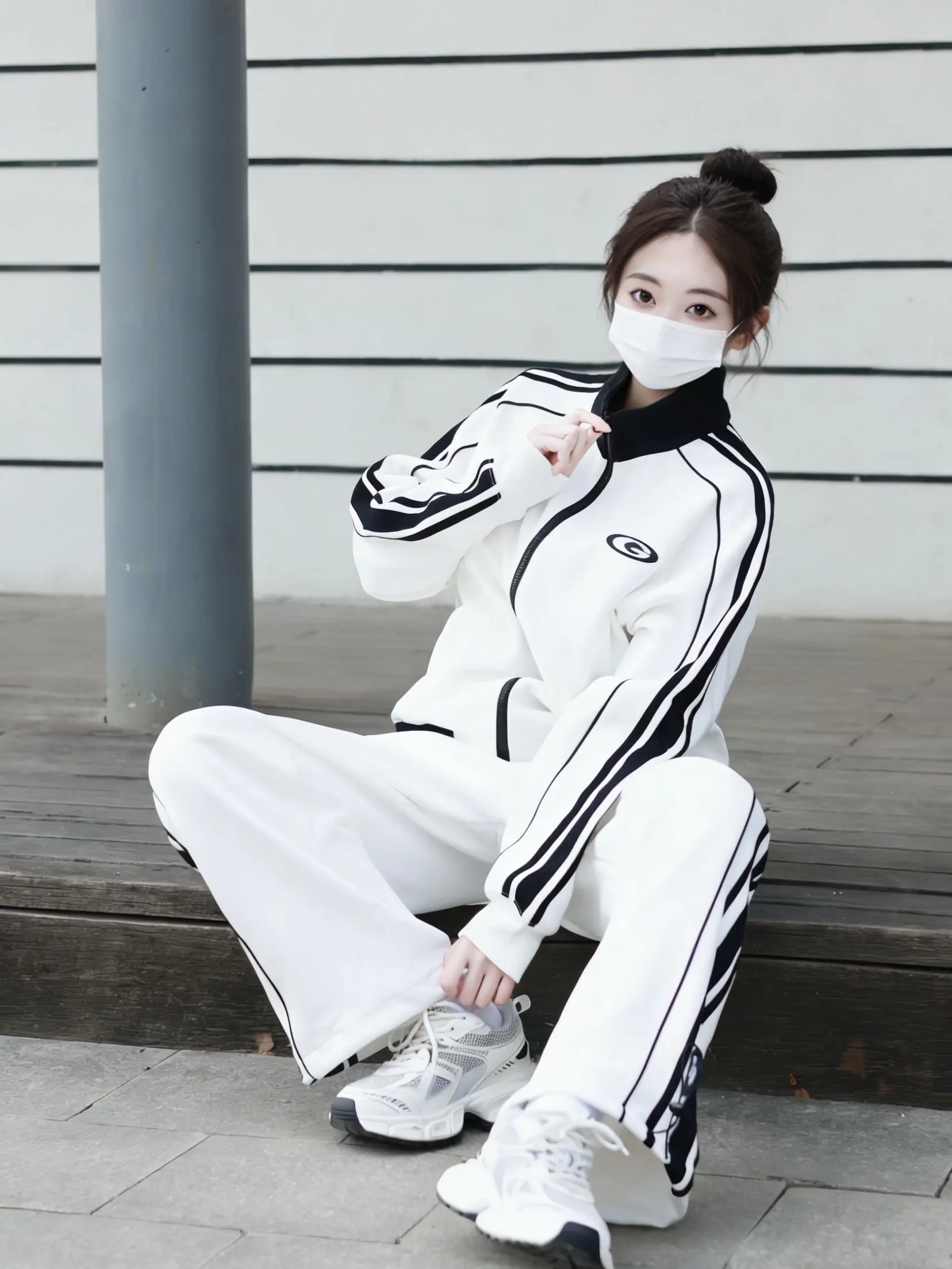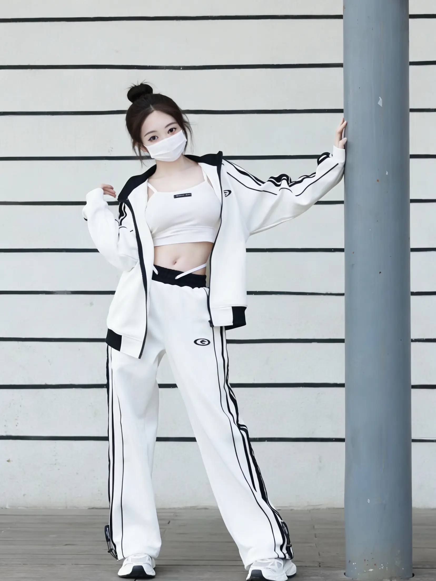 甜妹变酷姐只需要一套运动装!显瘦藏肉绝了。这套黑白条纹运动套装我真的吹爆!