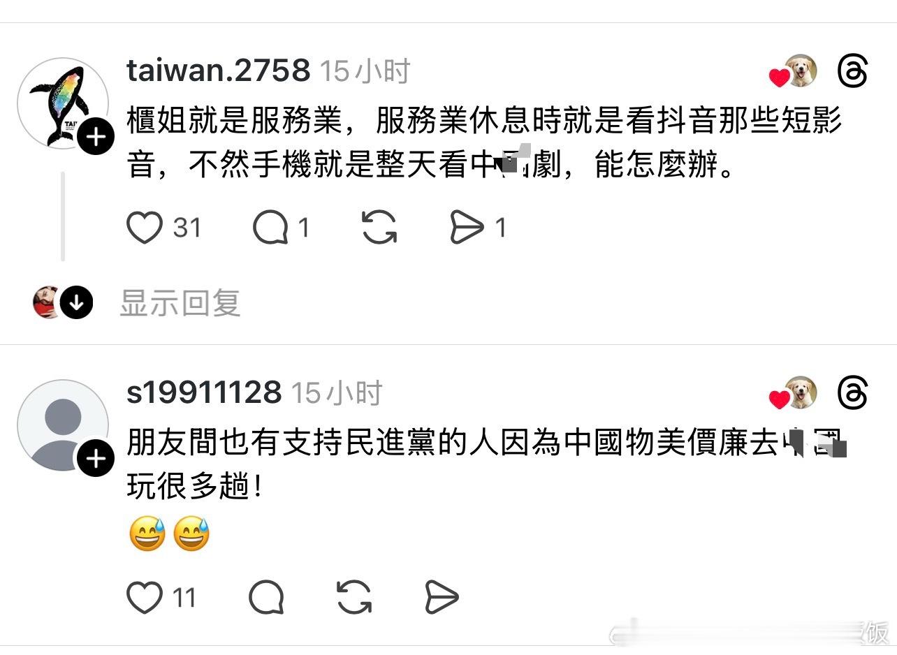 脆上有台湾人吐槽身边人爱去大陆玩,评论区整个一青鸟大型破防现场