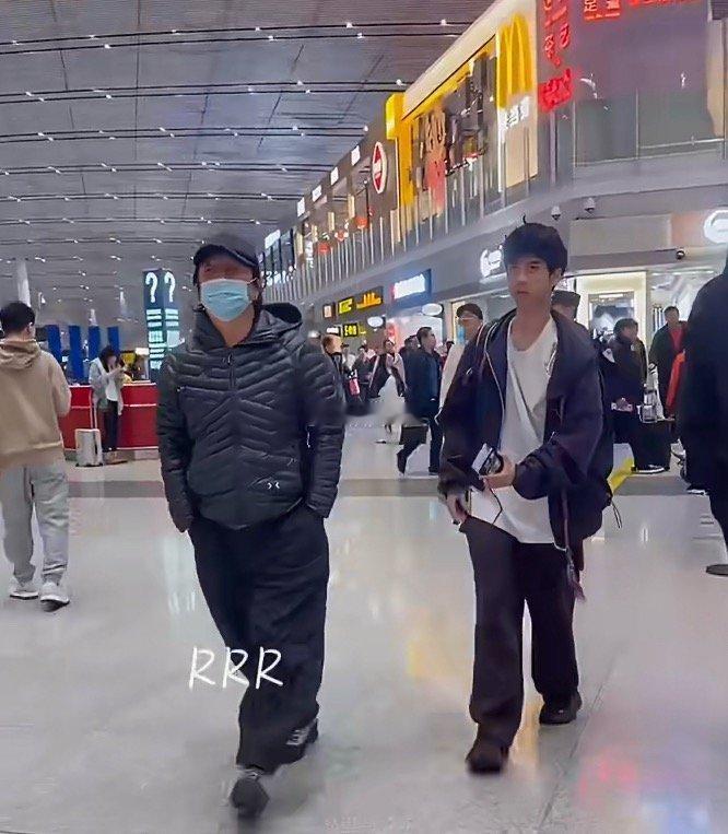 4月9日,58岁的郑钧在北京机场送别15岁儿子Jagger(郑熙岳)出国留学。父