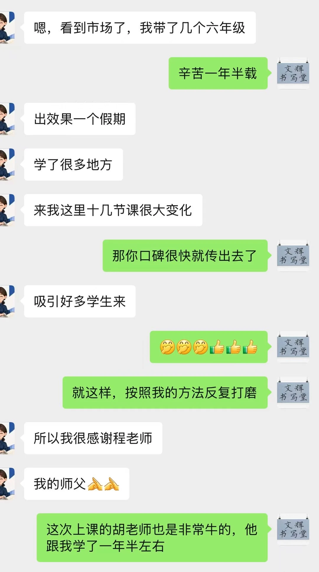 这位老师,跟我师训两个左右,做事认真,很有责任心,人家是从一个孩子做起来的,目前八十多个,还会越来越好。以前一些机构采用推流,低价模式招生,那样不长久,教育不能完全按照商业模式的,需要真才实学和责任心,这样的工作室必然越来越好。
