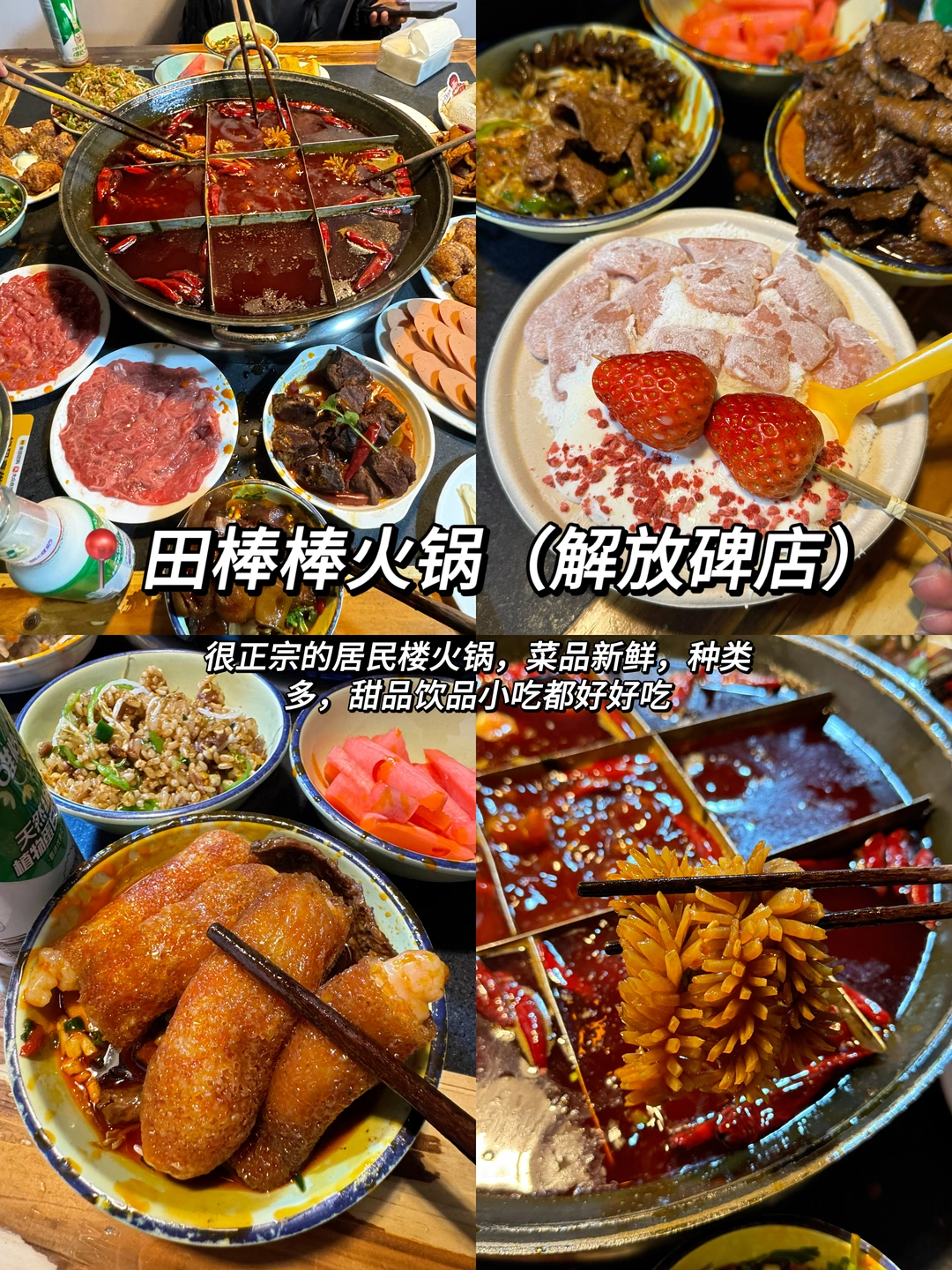 6️⃣田棒棒火锅(解放碑店):解放碑附近的居民楼火锅还是王迅同款,平时很多人排队吃,菜品都很新鲜,甜品饮品都很不错,竹荪虾滑是招牌一定要吃脆脆嫩嫩的