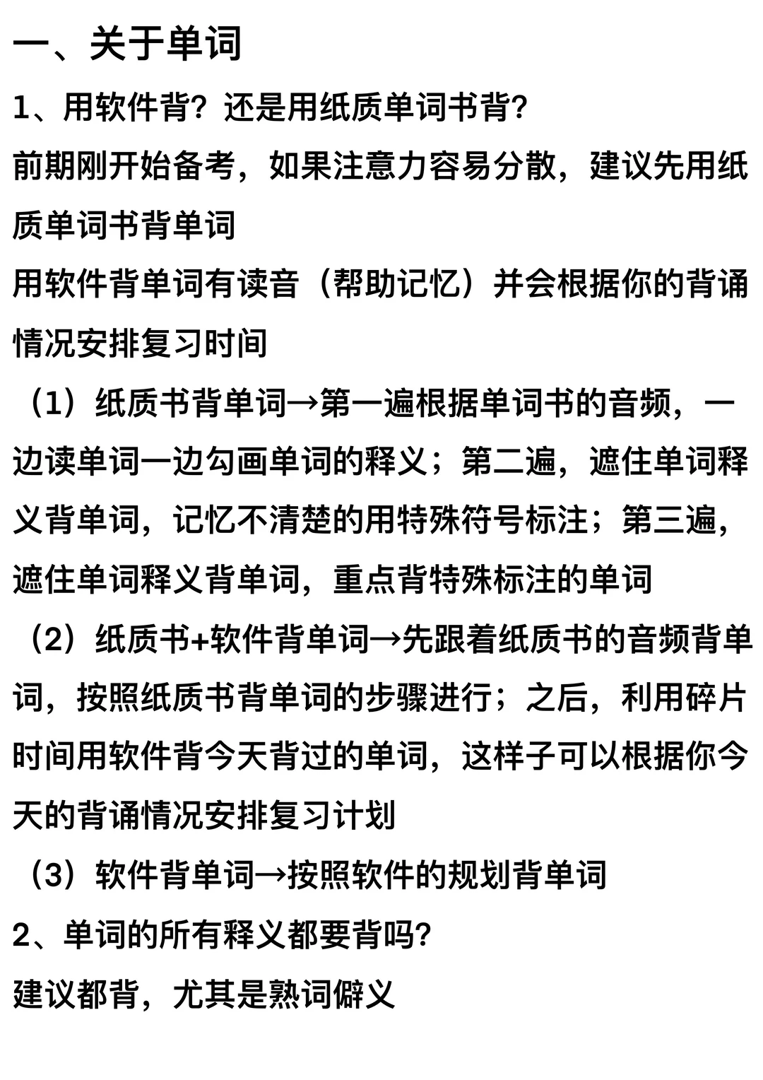 备考资料:单词书、笔记、往年真题