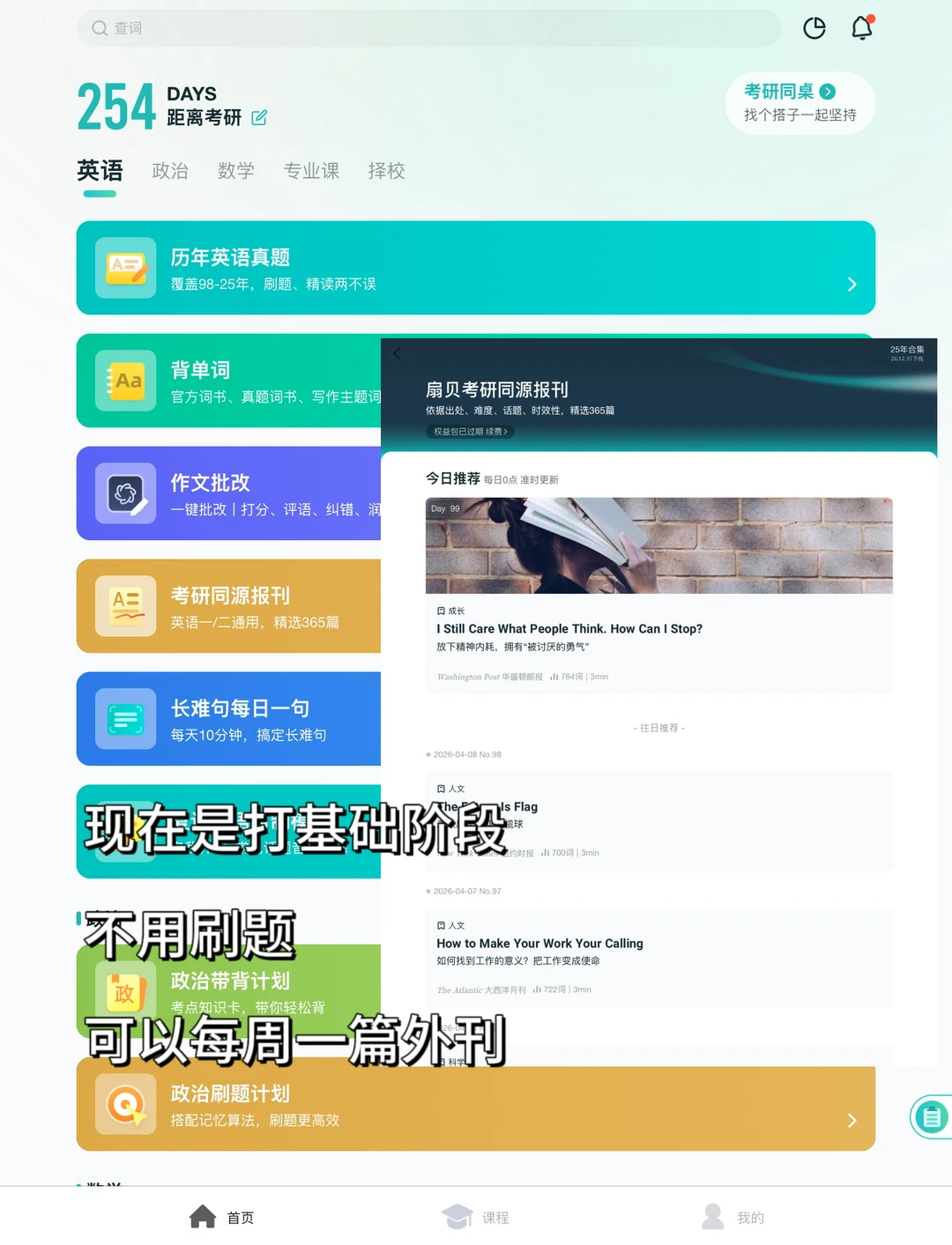 2、每天做1篇阅读题