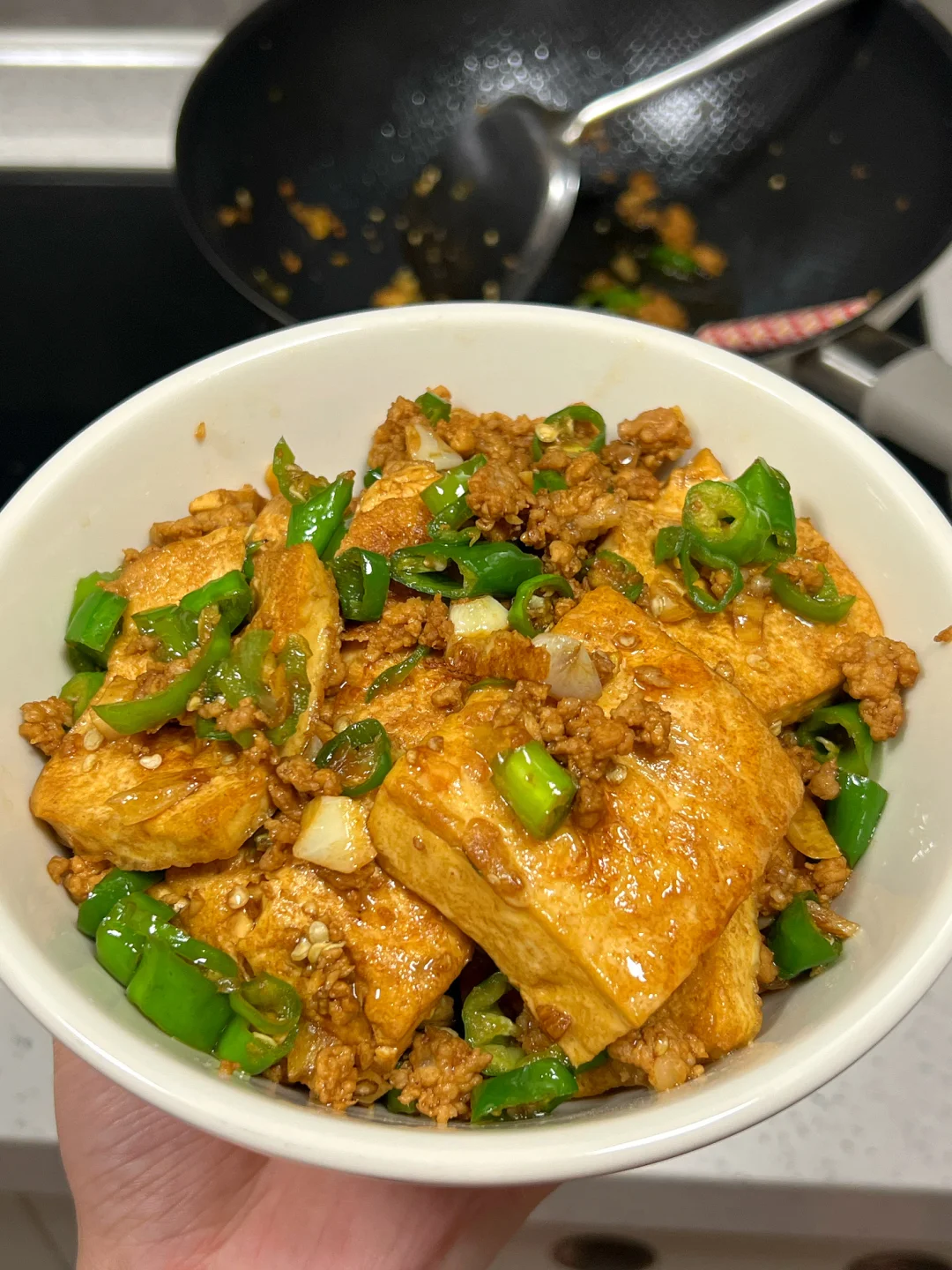 让男朋友跟咱们江西博主学的青椒肉末豆腐