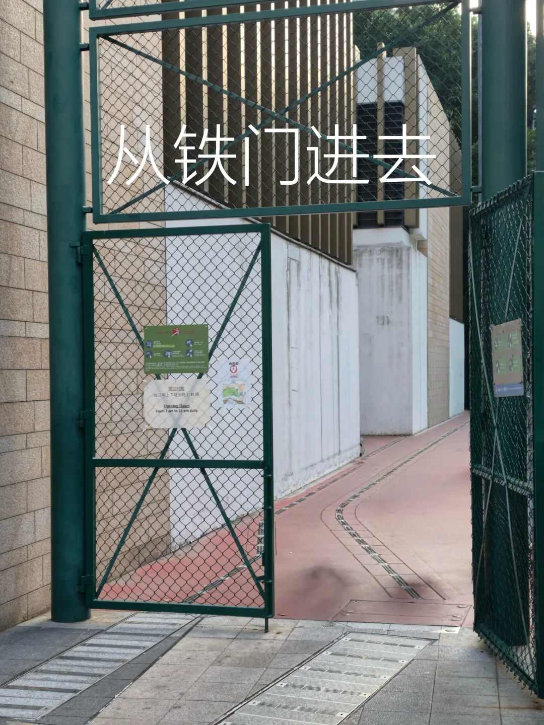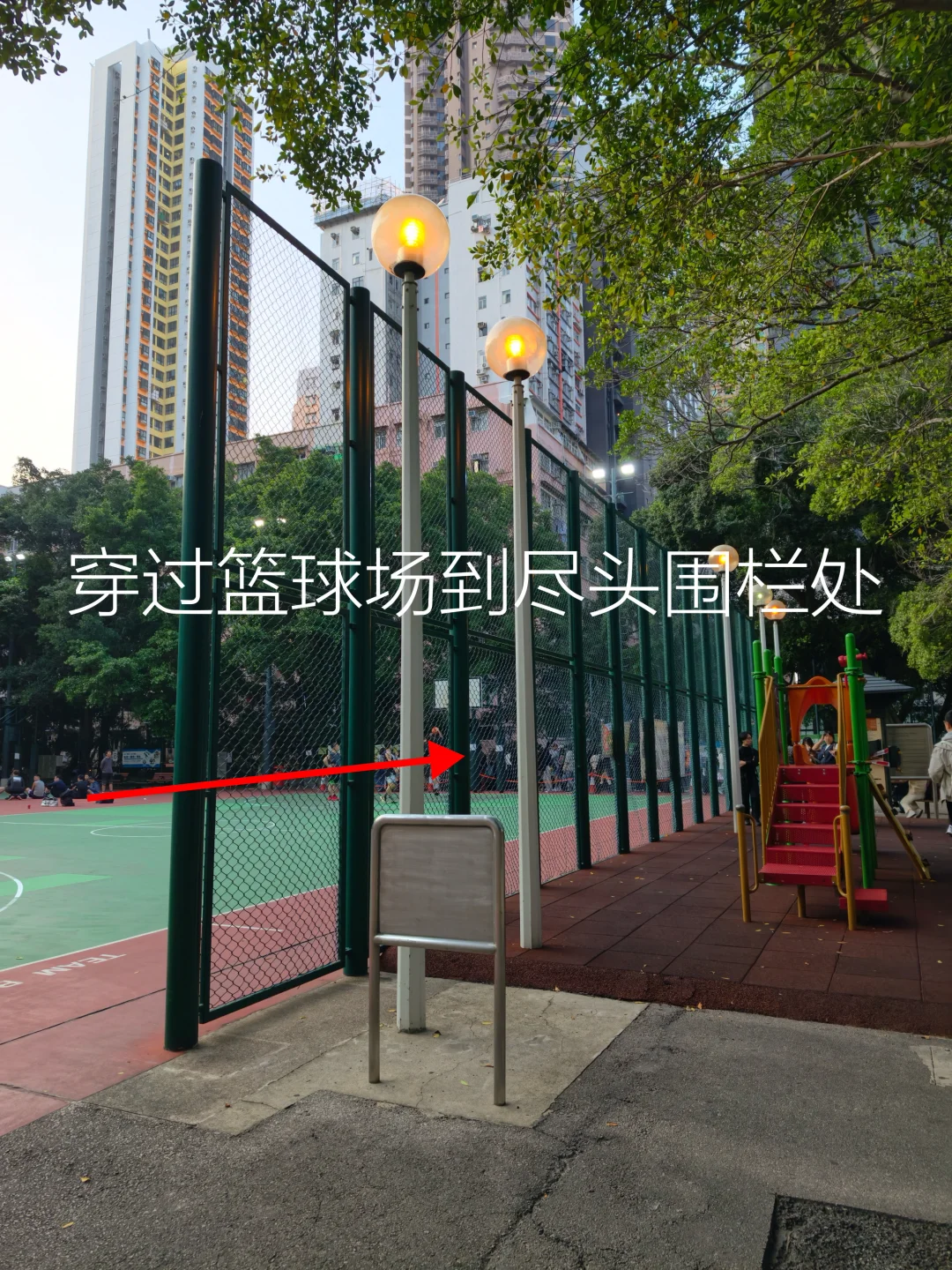 ❸ 穿过儿童乐园往右拐进铁门