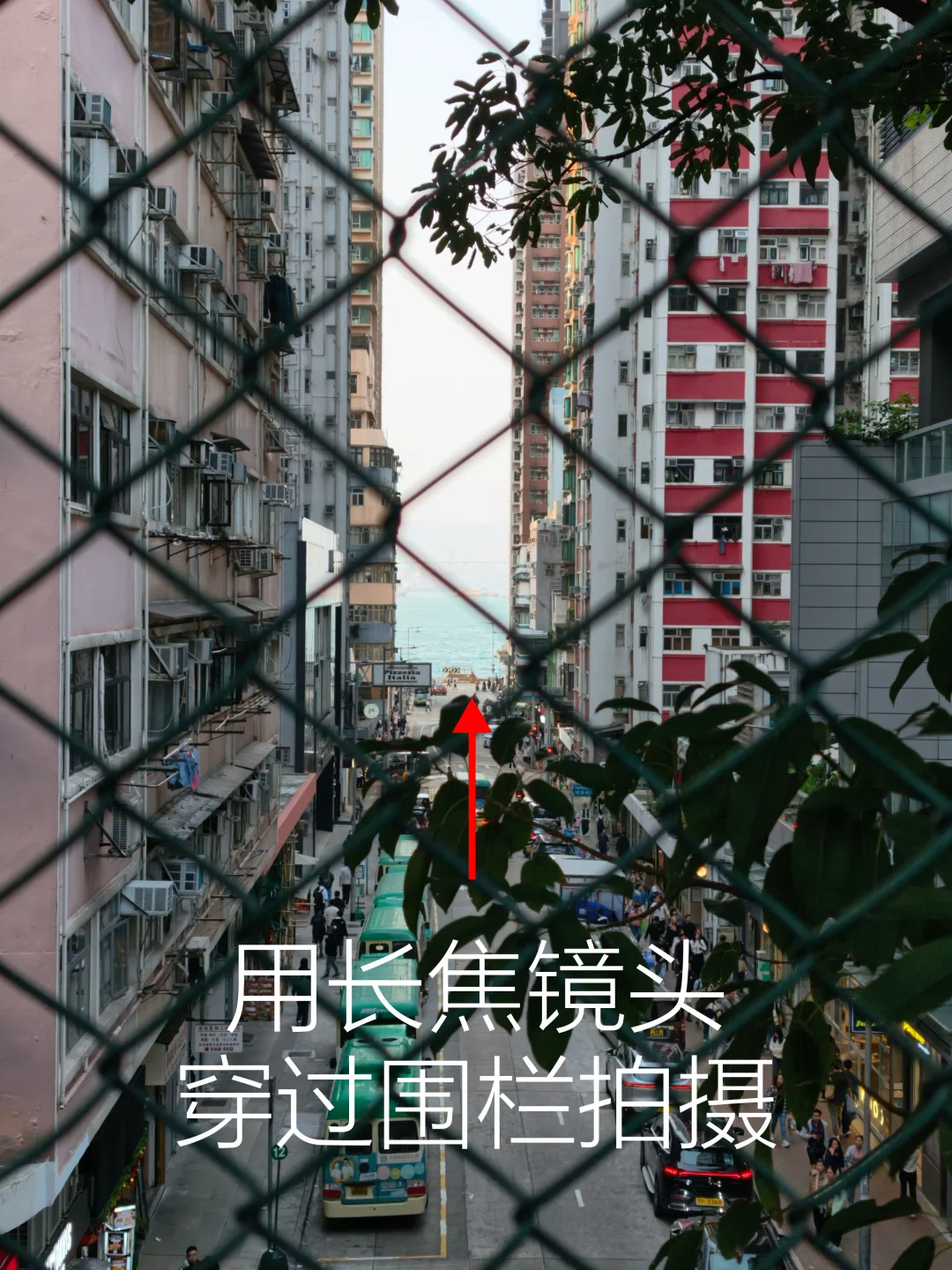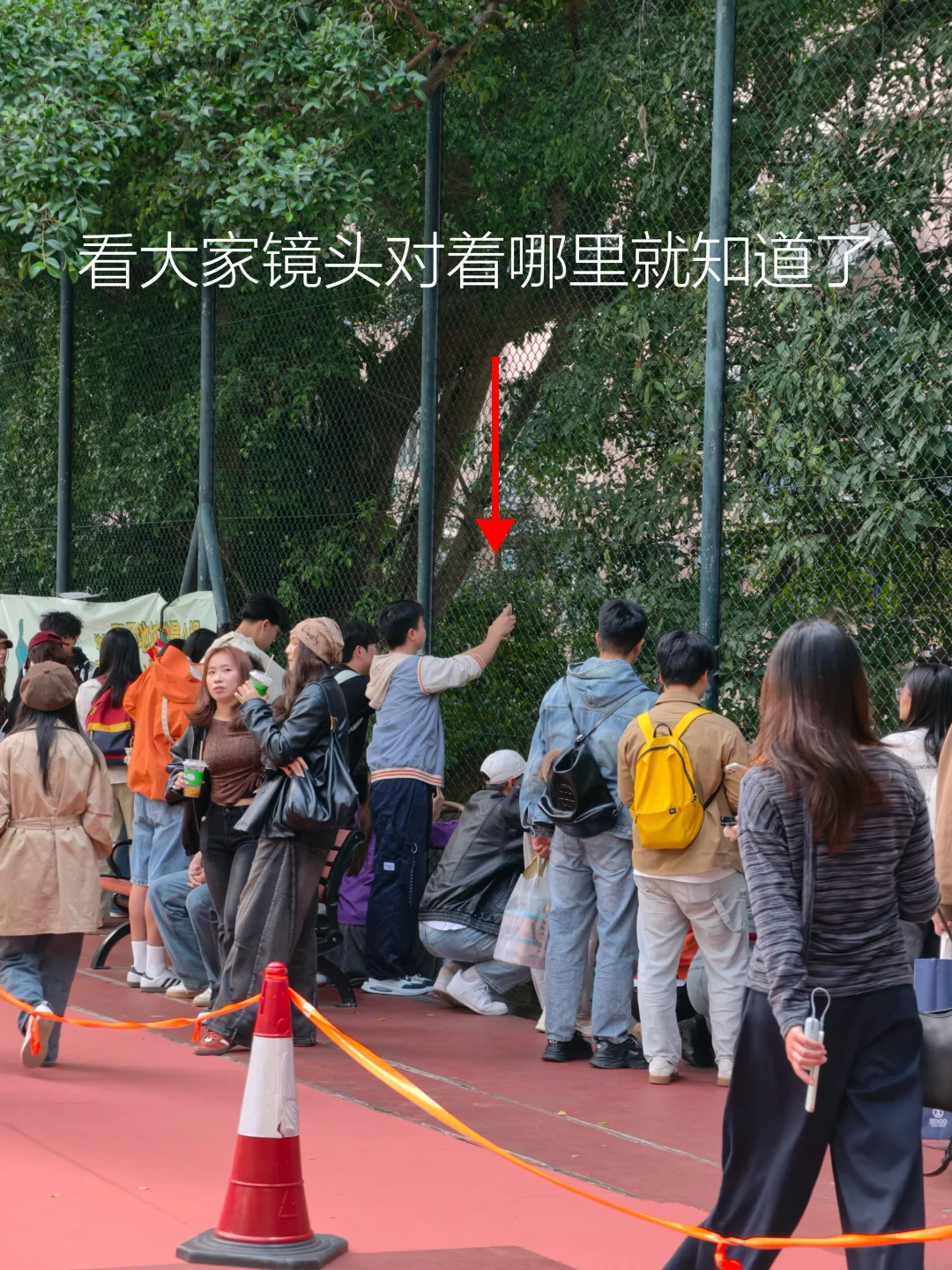 ❹ 经过球场上楼梯,右拐直走到尽头就是围栏处机位了