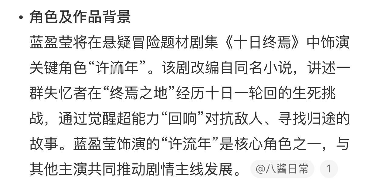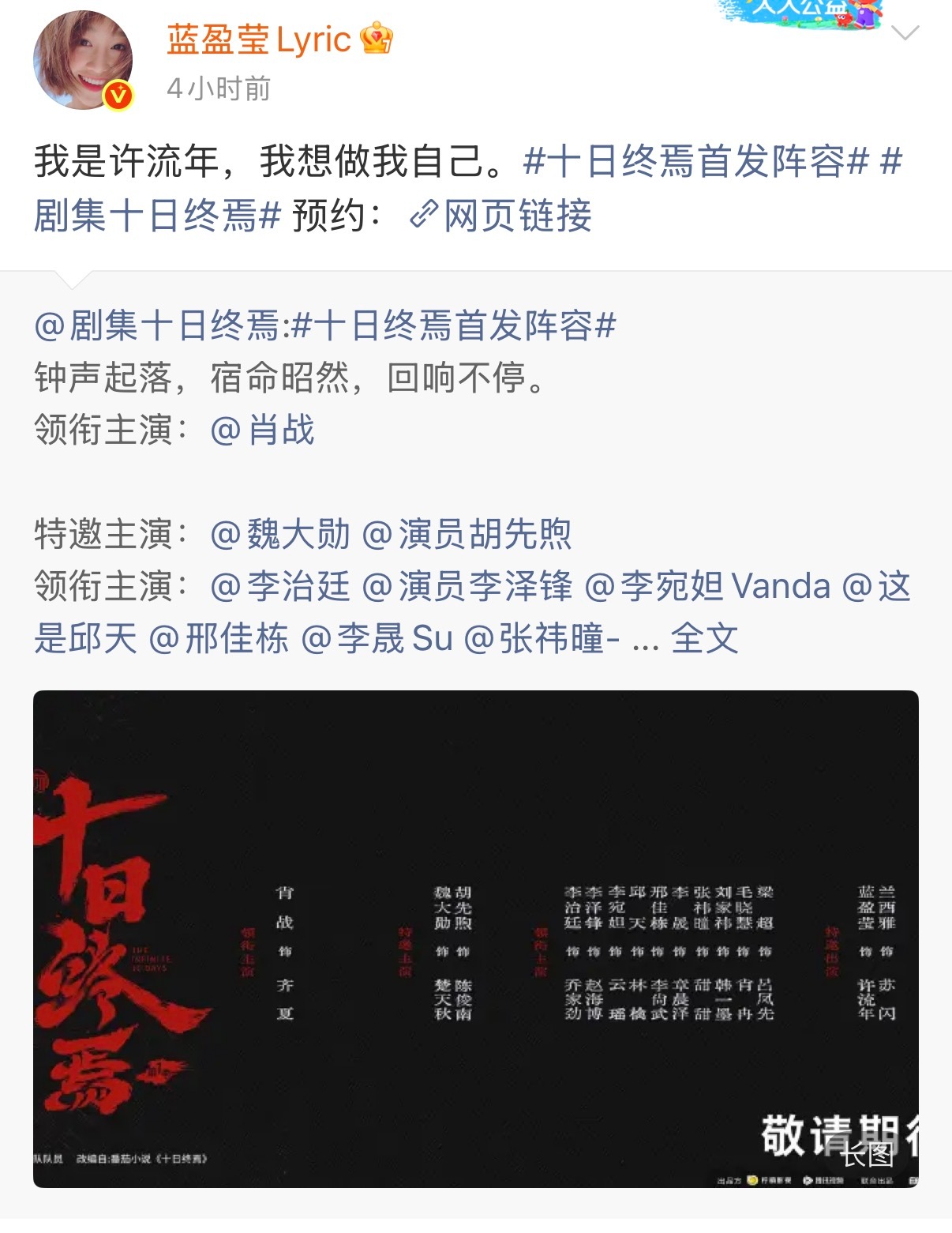 蓝盈莹十日终焉角色适配度蓝盈莹许流年好贴 蓝盈莹十日终焉官宣,饰演许流年,作为终