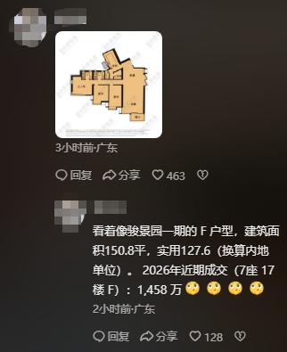 而房型所属小区资料显示,这套房子建筑面积150平,实用127平,大概价格在1458万。