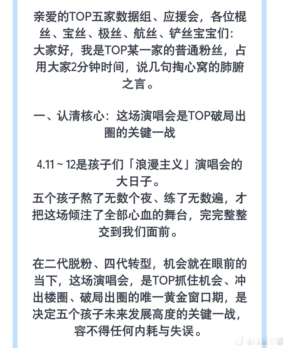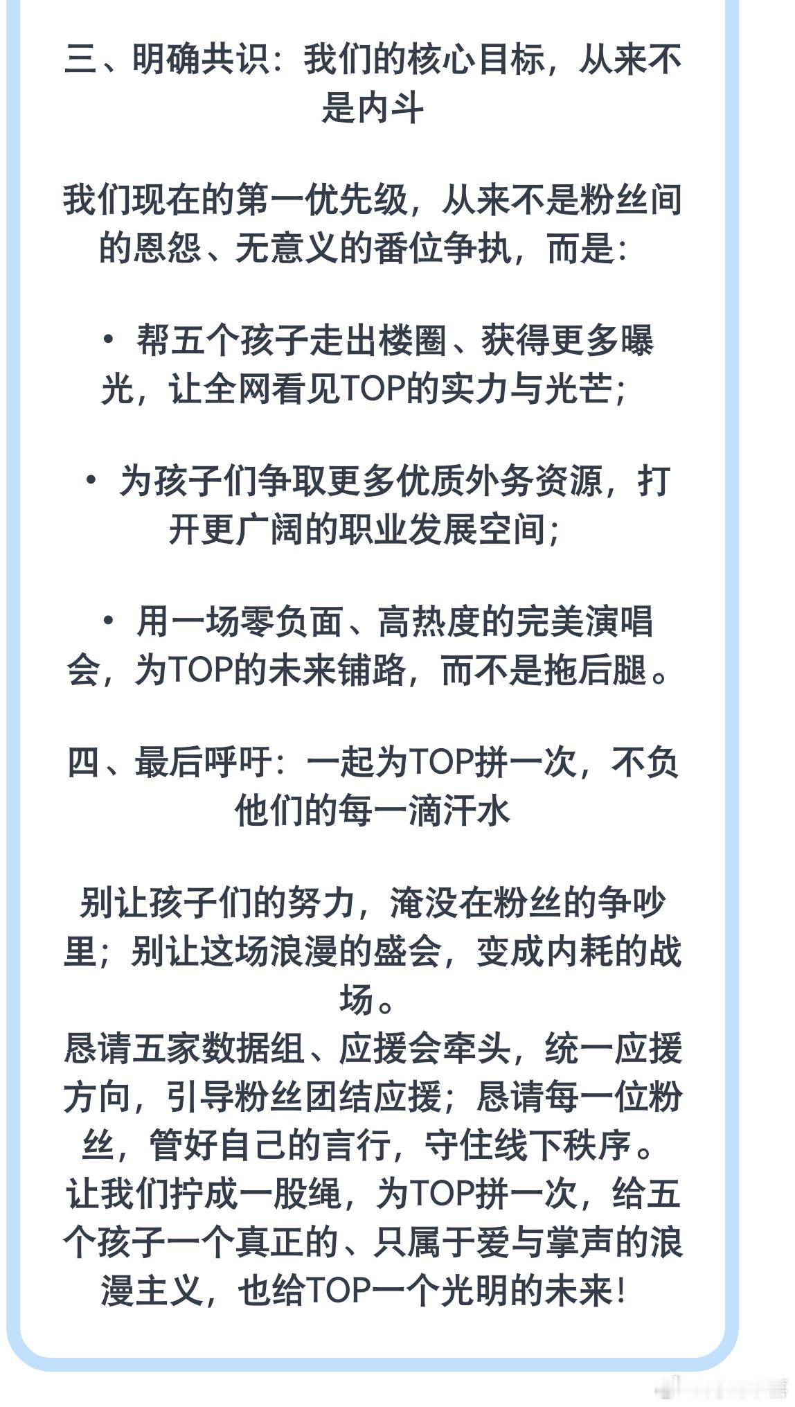 致TOP五家全体粉丝的友好沟通倡议书