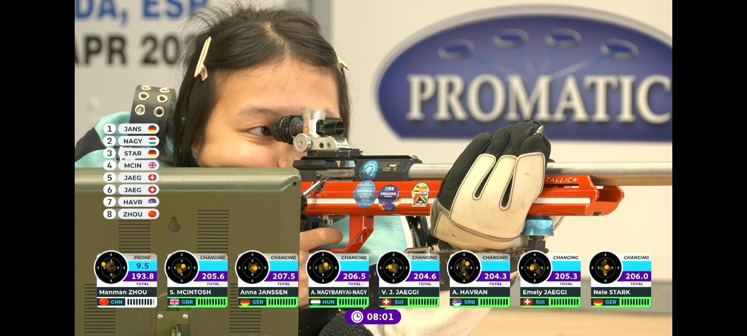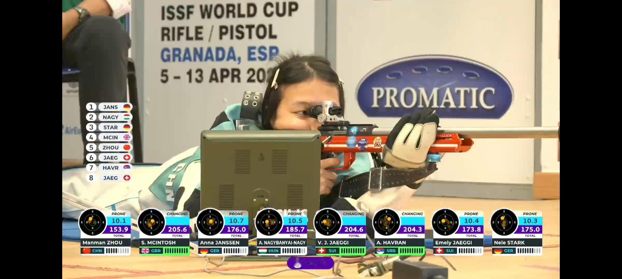 女子50米步枪三姿第七名,周漫漫