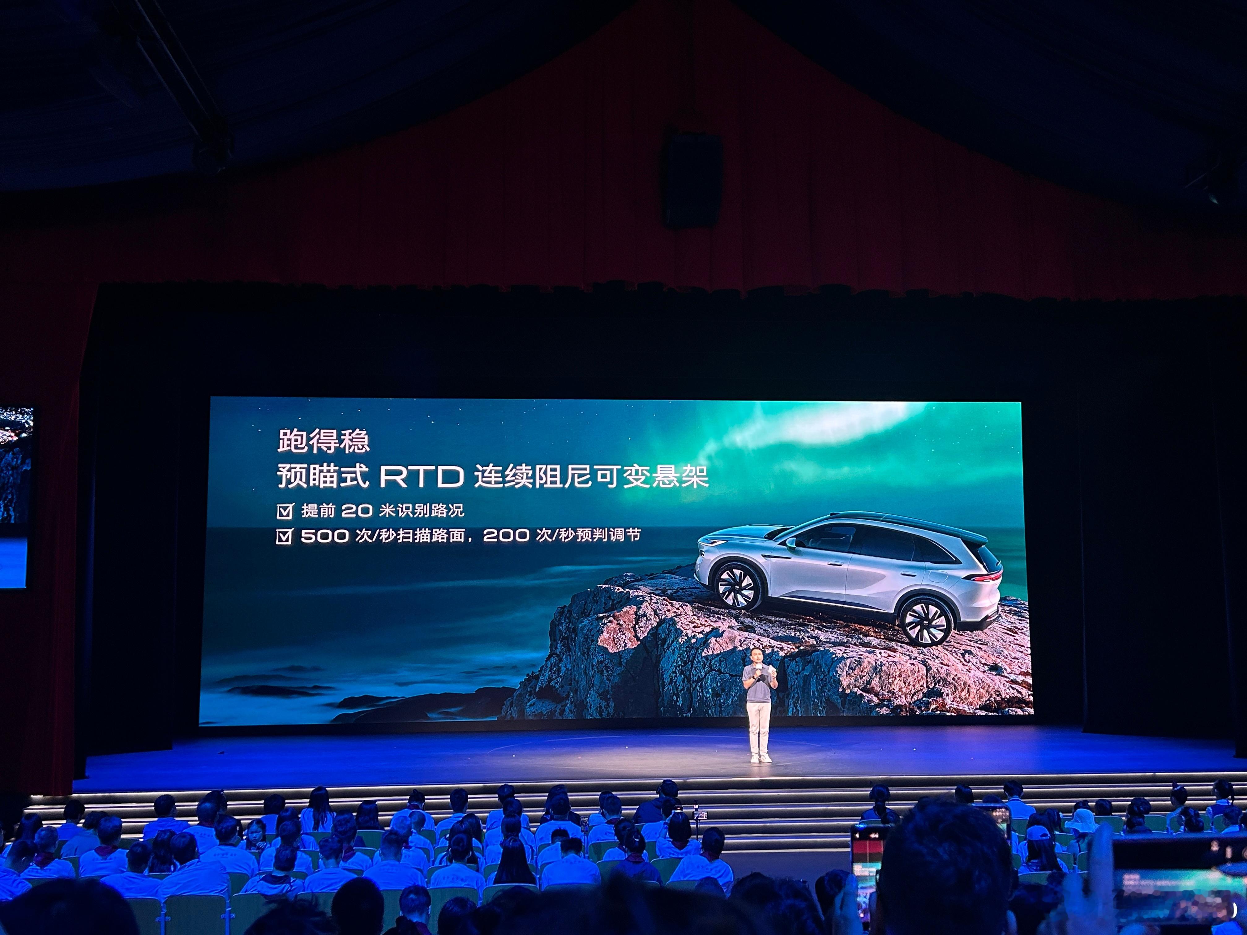 在智能化方面,别克至境 E7 搭载 Momenta R6 强化学习大模型与豆包大模型。新车通过预瞄式 RTD 连续阻尼可变悬架,可以主动过滤颠簸震动,搭配 eBoost 舒适制动功能,可以有效抑制停车时的车身前倾、预防晕车。汽场全开