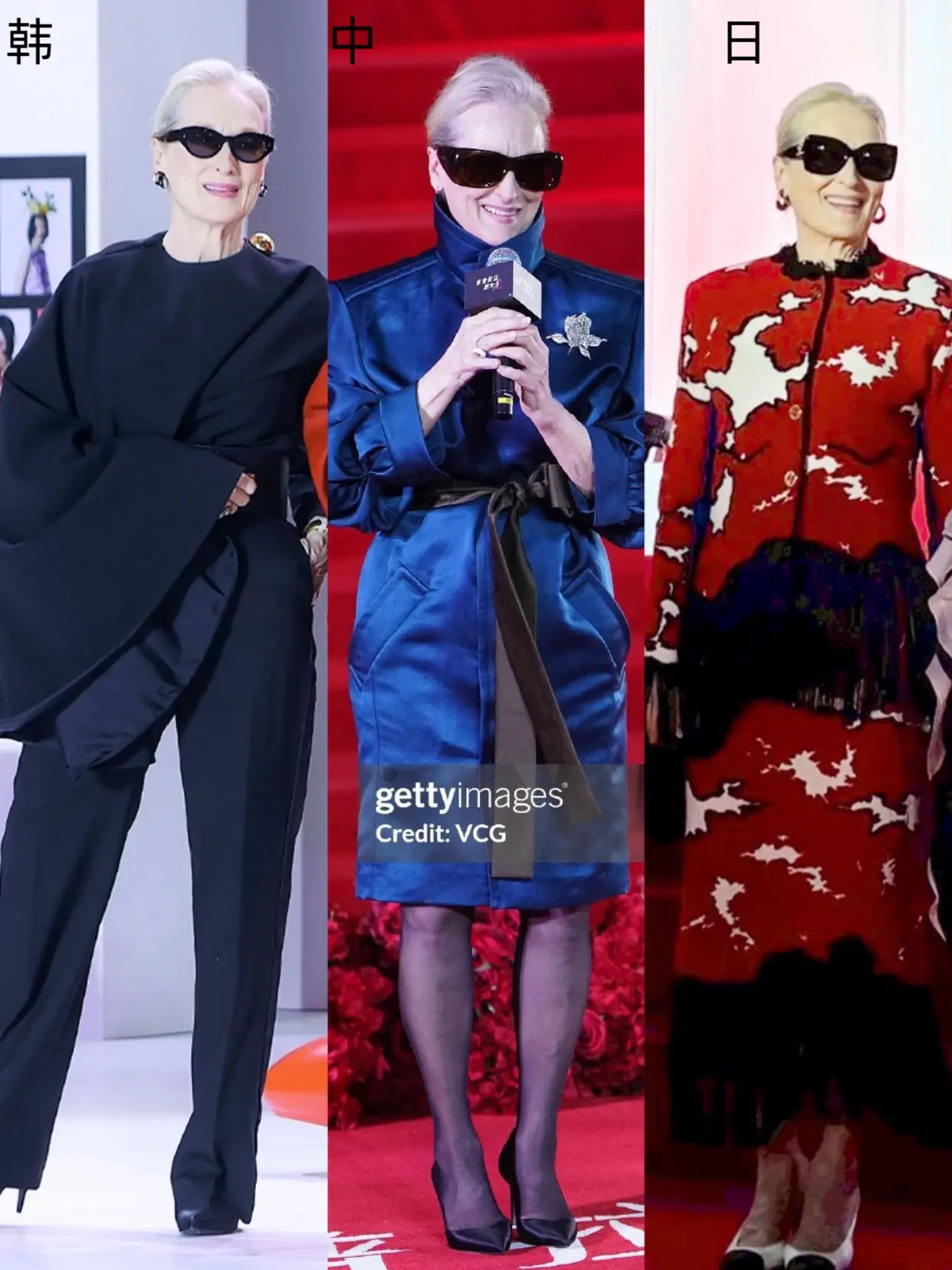 中日韩穿普拉达的女王2宣传穿搭。东京战:梅姨穿香奈儿手工坊套装,安妮·...
