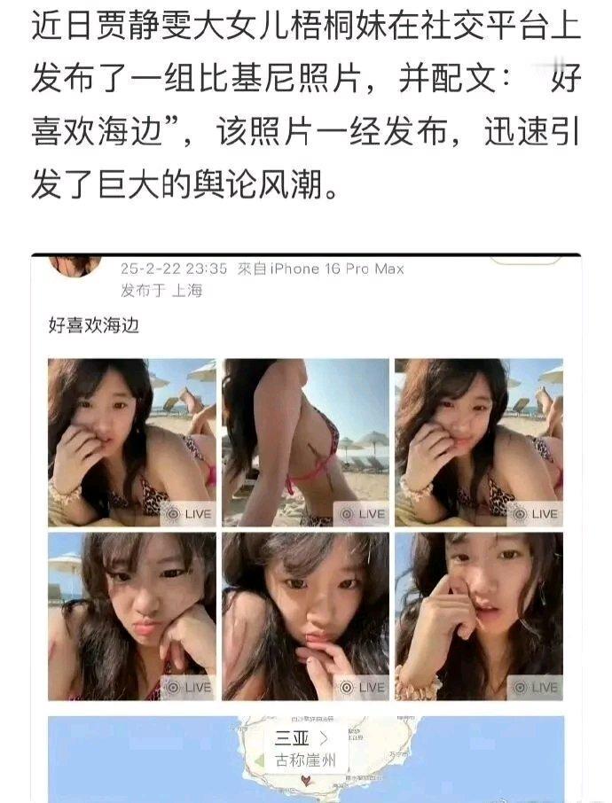 家里也起了教育纷争,继父修杰楷提醒她注意仪态,却被一句“不要你管”怼回。贾静雯则很开明,觉得成年女儿有权决定穿着。她之前还和梧桐妹去酒吧,这或许和她曾与孙志浩争抚养权的经历有关,失去过所以更愿给女儿自由。网友看法不一,有人觉得纵容,有人觉得是尊重。其实梧桐妹以前穿衣风格就大胆,未成年时就打洞,这次比基尼照又掀起波澜。