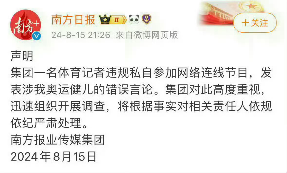 南方日报好意思在这说“对运动员的恶意侮辱要付法律代价”,朱小龙侮辱全红婵的事都调查了多久了,到现在也没个结果。