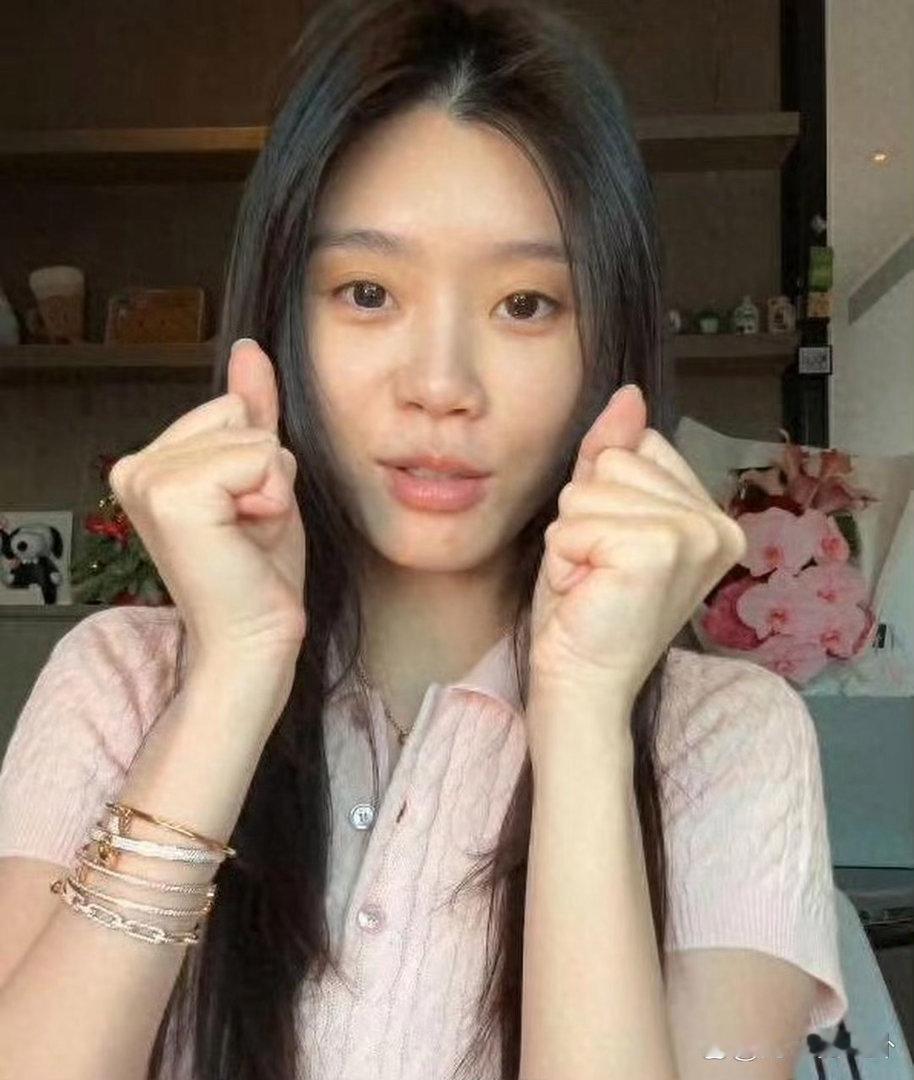 奚梦瑶大方素颜出镜状态随性,第一眼注意力全被配饰吸引,单手叠戴五条钻石手链,奢华感直接拉满