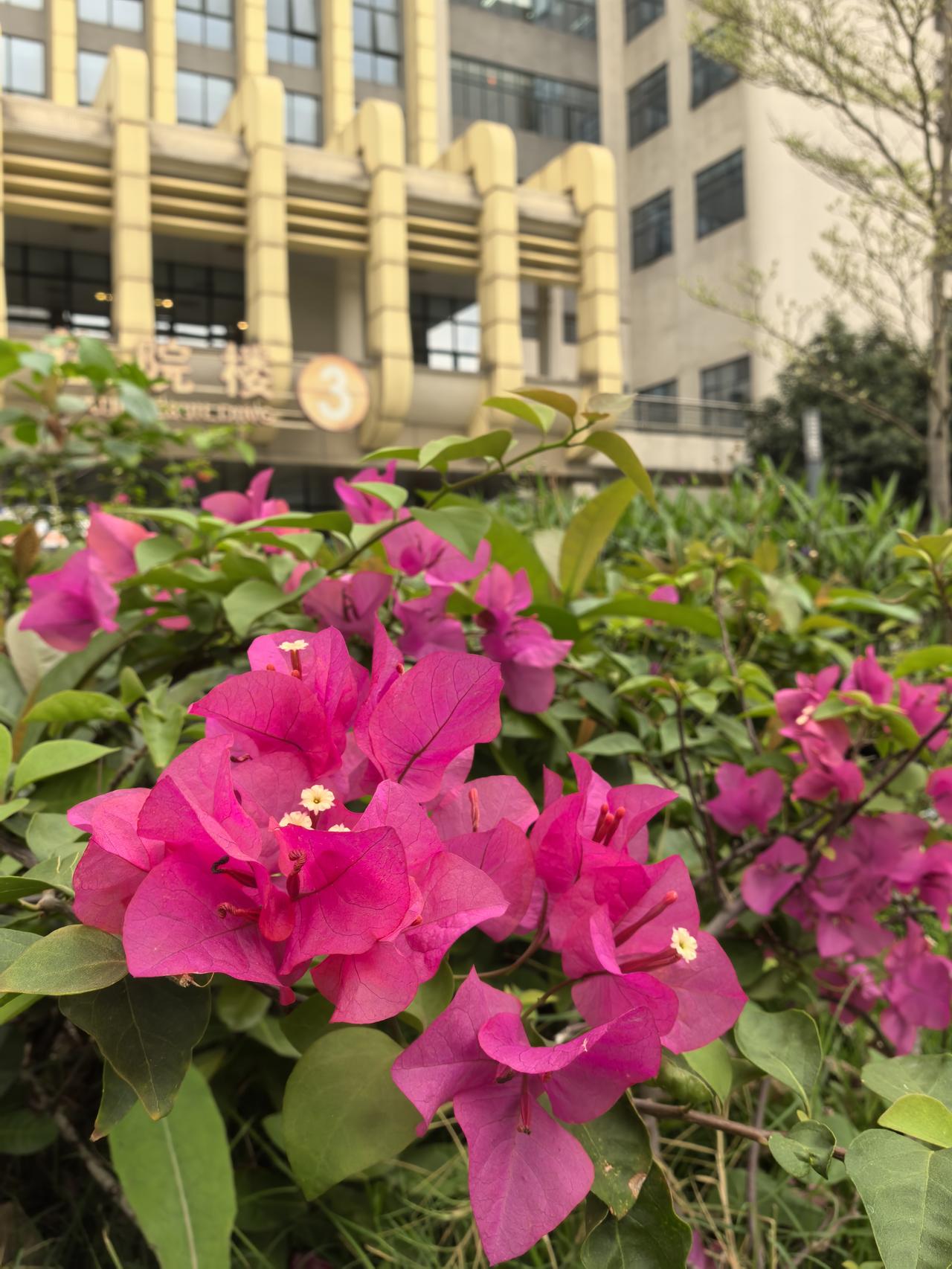 天色沉沉,医院的三角梅照常绽放。花意灼灼,真是一剂治愈夜班疲惫的良药。