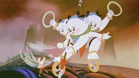 咱们动漫形象中最火的两个形象,一猴一藕,藕就是哪吒,你去看最早的《大闹天宫》里哪吒三太子的形象一出来,就是个年画娃娃,胳膊圆咕噜的,穿个红肚兜,看着就富态,有福。