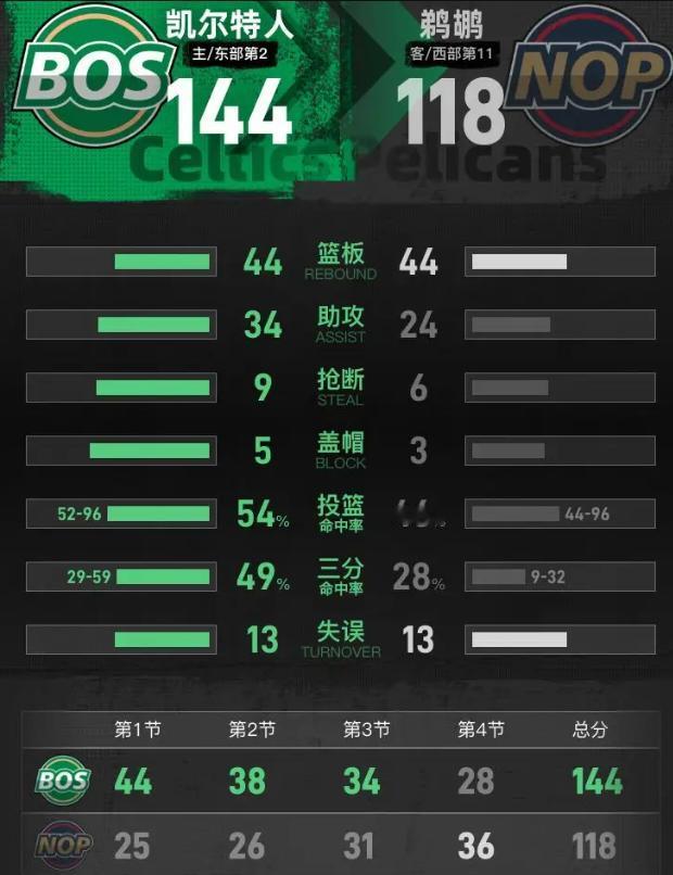 144-118,乍一看又是凯尔特人虐菜的一天。可您要是真这么想,那可就错过了今晚最值钱的故事。这比分就是个幌子,真正的戏码藏在那些看似垃圾的时间里——一个19岁的娃娃,在绿军的冠军流水线上,生生打出了自己的投名状。
