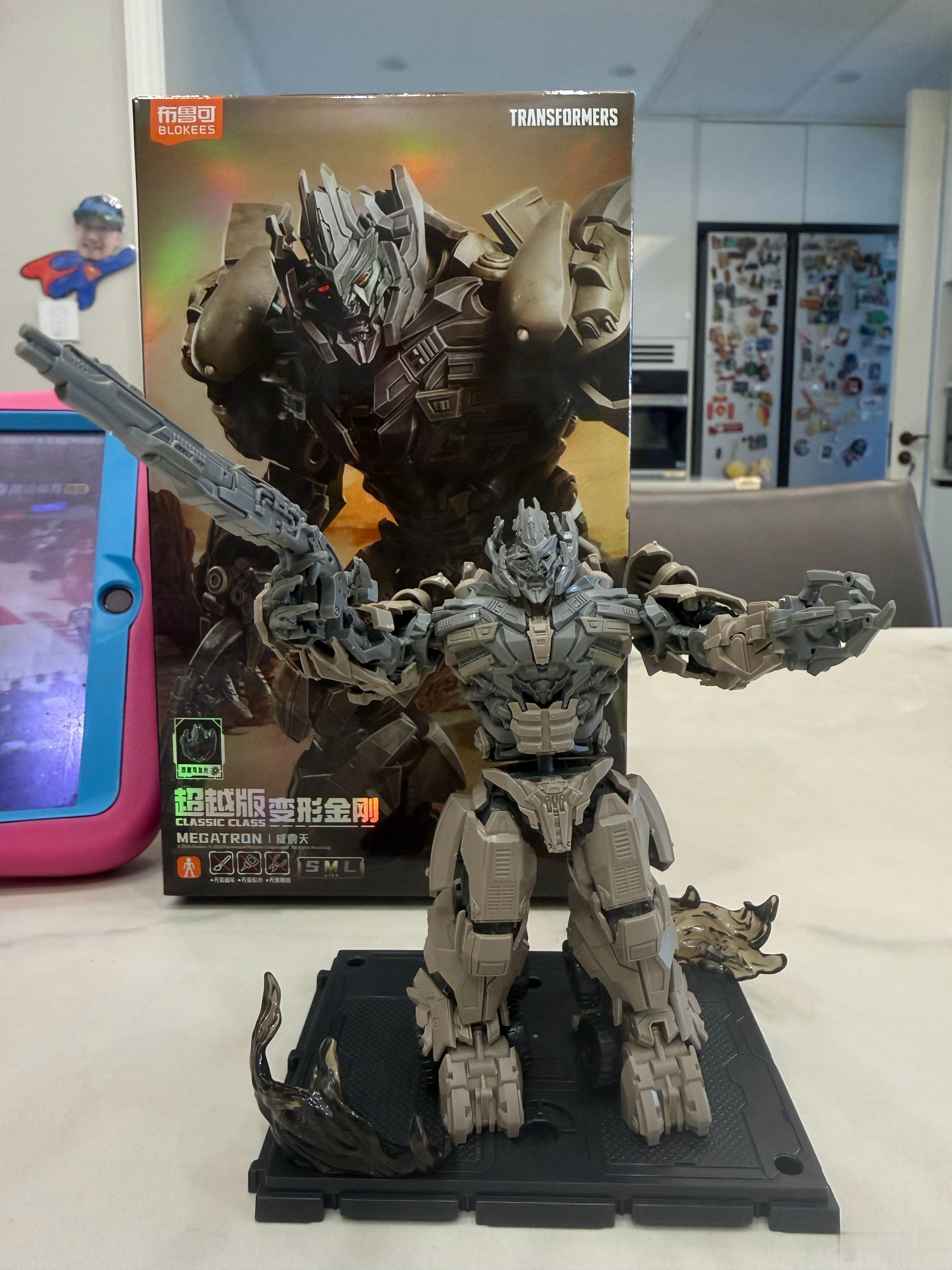 今天上午趁杨核桃不在,我把他的布鲁可电影版威震天给偷偷拼了,设计非常精巧复杂,用了大概一小时拼好以后细节清晰可见,摆着非常威风。作为一个变形金刚铁粉,我之前对布鲁可这种形式的变形金刚不太了解。变形金刚要是不会变形,乐趣在哪儿呢?今天动手实操一下,体会到了一种玩乐高的乐趣,只能说各有各的乐趣。想想屋里还有杨核桃屯的超大的布鲁可声波,布鲁可擎天柱,布鲁可大黄蜂,我决定还是把困难留给他….哎,终于到了偷儿子玩具玩的年龄了。