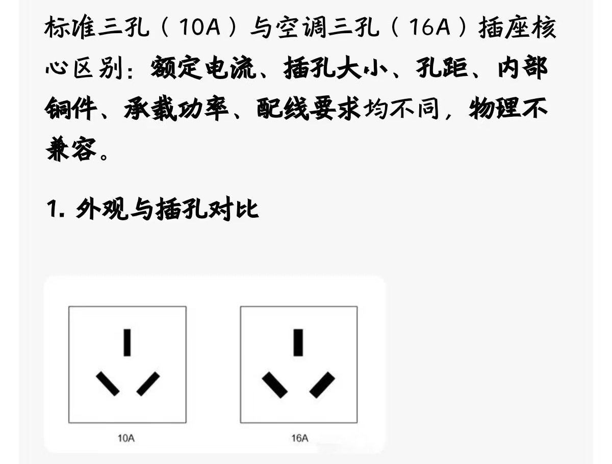 小知识,空调冰箱这些大功率电器,插座是16A的,和普通10A插座有区别