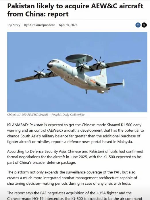 搭配空警 500 提供的战场态势感知和目标引导,歼 35 的作战效能将得到几何级提升,让巴基斯坦空军第一次拥有了对抗印度先进战机的非对称优势。