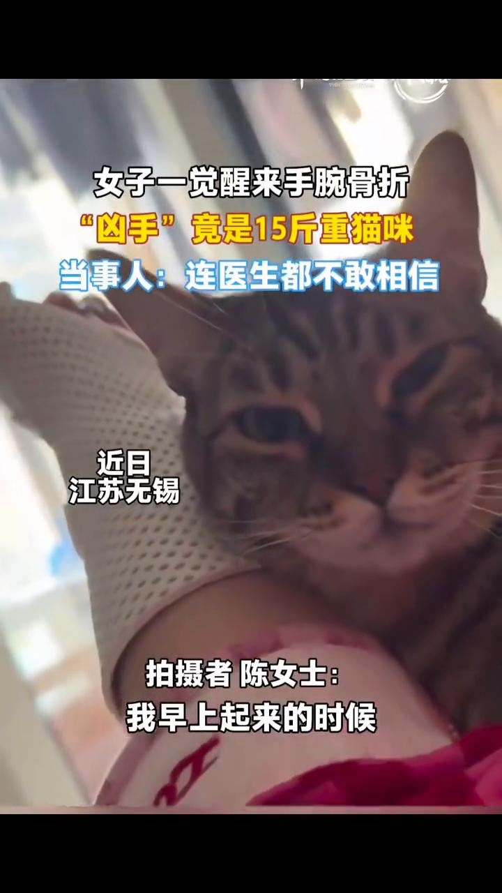 女子一觉醒来手腕骨折,"凶手"竟是15斤重猫咪。当事人:连医生都不敢相信。 近日