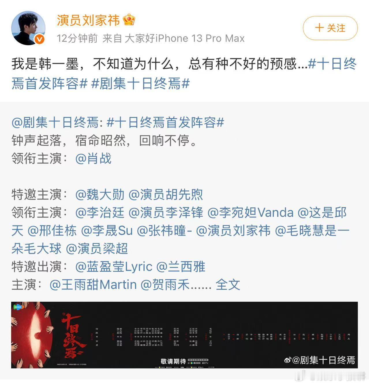 刘家祎演韩一墨太对味了刘家祎这张脸天生适合演悬疑 韩一墨选角太可!刘家祎的阴郁藏疯狂,脆弱带狠劲,颓废作家双面感带感,悬疑脸适配度拉满👏剧集十日终焉